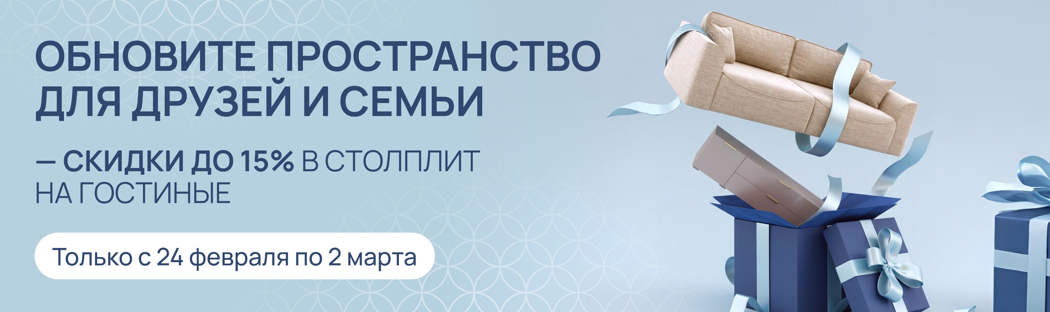 Обновите пространство для друзей и семьи — скидки до 15% в СТОЛПЛИТ на гостиные