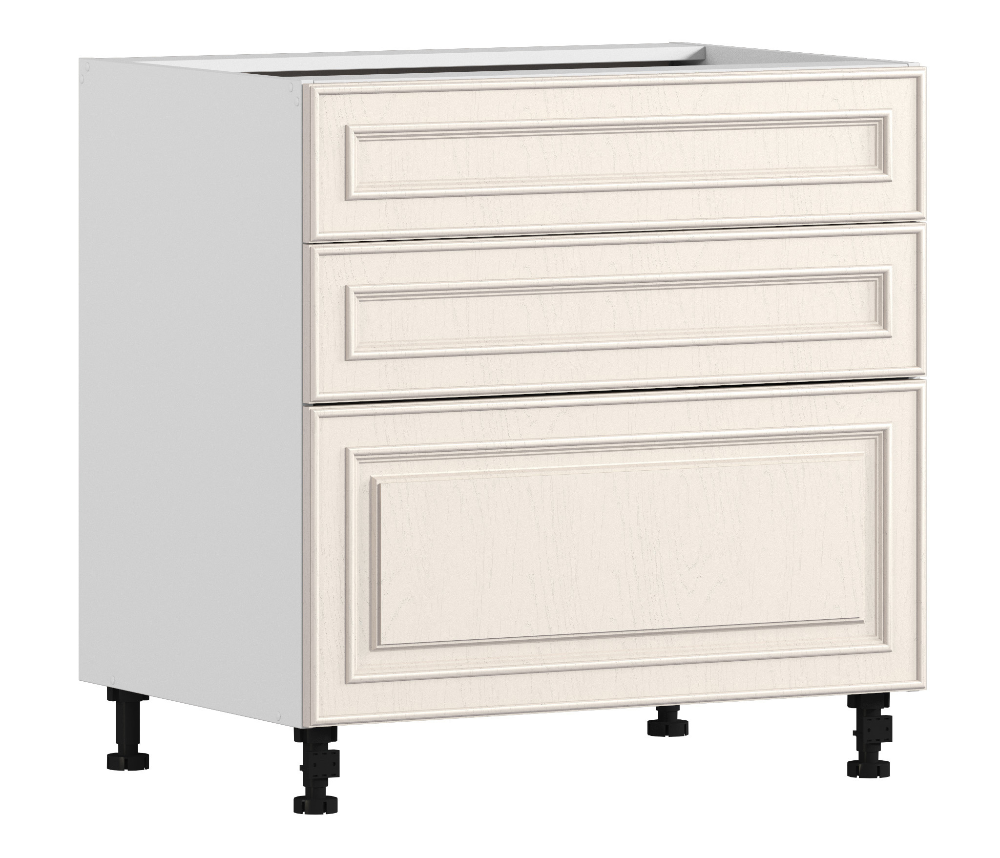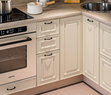 Рамочные филенчатые фасады из МДФ: Каждый фасад выполнен из высококачественного МДФ с рамочной конструкцией и филенками, что придает кухне характерный классический вид. Эти фасады не только красивы, но и устойчивы к механическим повреждениям и воздействию влаги.