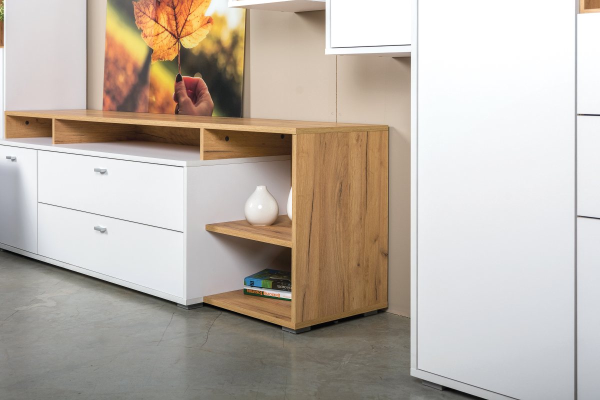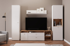 Семь разноформатных модулей гостиной "Бэль" покоряют комфортностью и функциональностью, интригуют выразительным цветовым миксом. Шкаф навесной, пенал, две тумбы для аппаратуры, комод, полка и журнальный стол набора для гостиной Бэль смотрятся красиво и стильно.