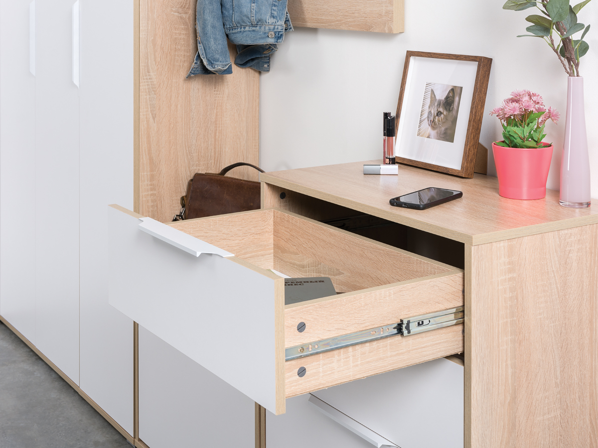 Лаконичная дизайнерская фурнитура идеально дополняет внешний вид прихожей Куба.