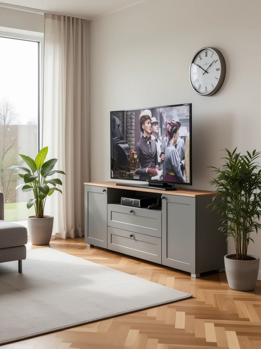 Серые комоды под телевизор