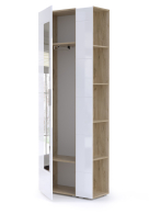 Данная комплектация представлена набором модулей коллекции Лайн, и состоит из шкафа для одежды со стеллажом. Глубина модулей всего 35 см., что позволяет использовать мебель в весьма узких помещениях. Шкаф для одежды Лайн 08.122 располагает выдвижной штангой для одежды на вешалках и две полочки. Модель имеет универсальную сборку, дверка может открываться в любую сторону, что Вам необходимо определить при первой сборке модуля. Дверка шкафа во всю высоту декорирована зеркалом, что визуально расширяет пространство, делает его светлее и ярче. Стеллаж Лайн 10.141 располагает четырьмя открытыми полочками, на которых достаточно места для необходимых под рукой мелочей и предметов декора. Модель имеет универсальную сборку, используется как торцевой элемент мебельной композиции и может быть расположен с любой стороны. Зеркало с фацетом на фасаде шкафа подчёркивают нарядный вид прихожей, а пластиковая ручка цвета сатин созвучны линиям фрезеровки. Выполнена мебель в сочетании светлого цвета натурального дуба корпуса из ламинированной ДСП 16 мм, и глянцевых искристо белых МДФ фасадов. Линейная фрезеровка фасадов и периферическая фрезеровка по типу фацета украшают мебель и определяют название коллекции. Фасады закреплены на четырёхшарнирных петлях, выдвижные ящики мебели закреплены на шариковых направляющих полного выдвижения. Установлена на пластиковые опоры высотой 20 мм. Поставляется в разобранном виде, надёжно упакованными, с комплектом фурнитуры и инструкцией по сборке.