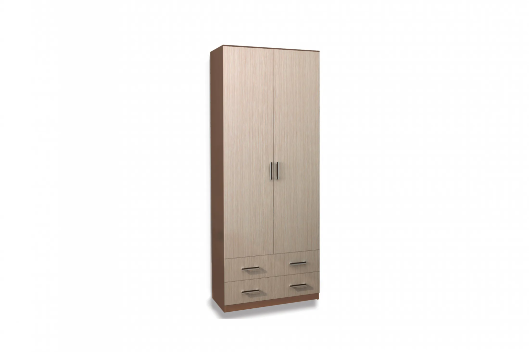Шкаф оснащен двумя отделениями с полками и двумя выдвижными ящиками, что позволяет удобно разместить все необходимые вещи. В комплекте имеется вся необходимая фурнитура и инструкция по сборке товара, что делает процесс установки быстрым и простым.