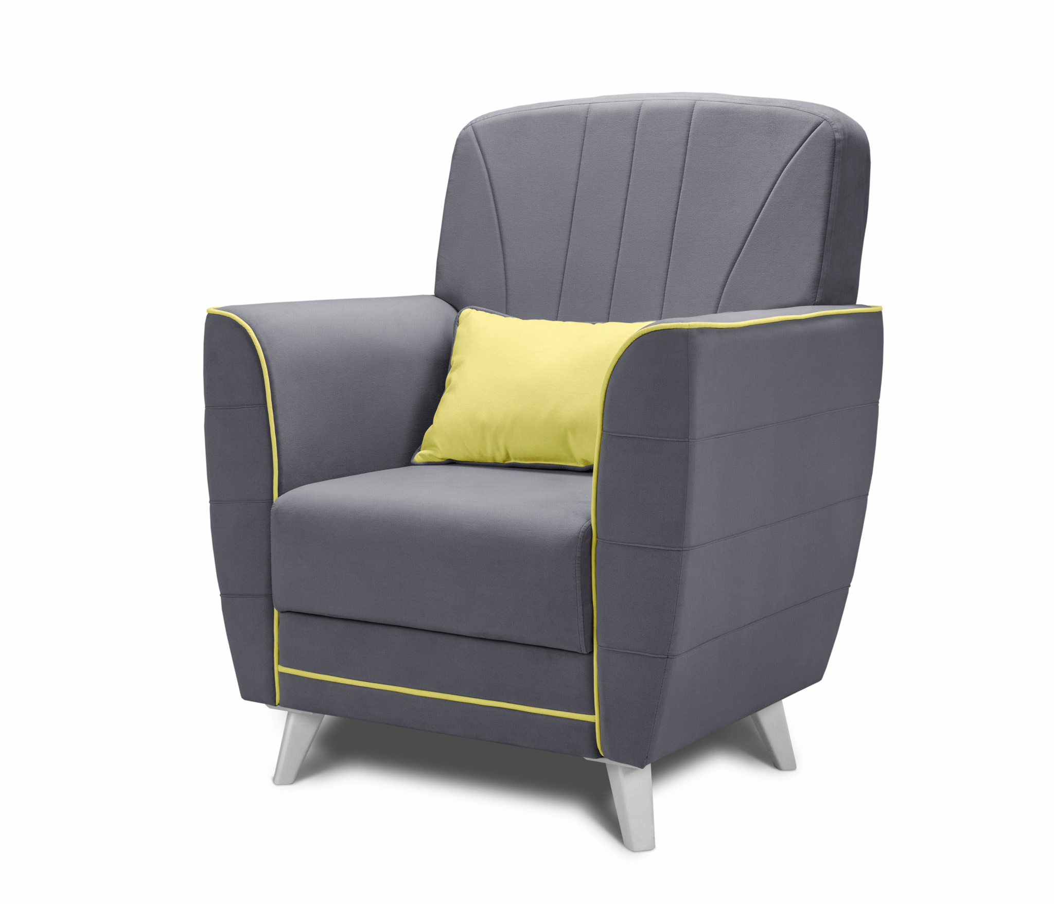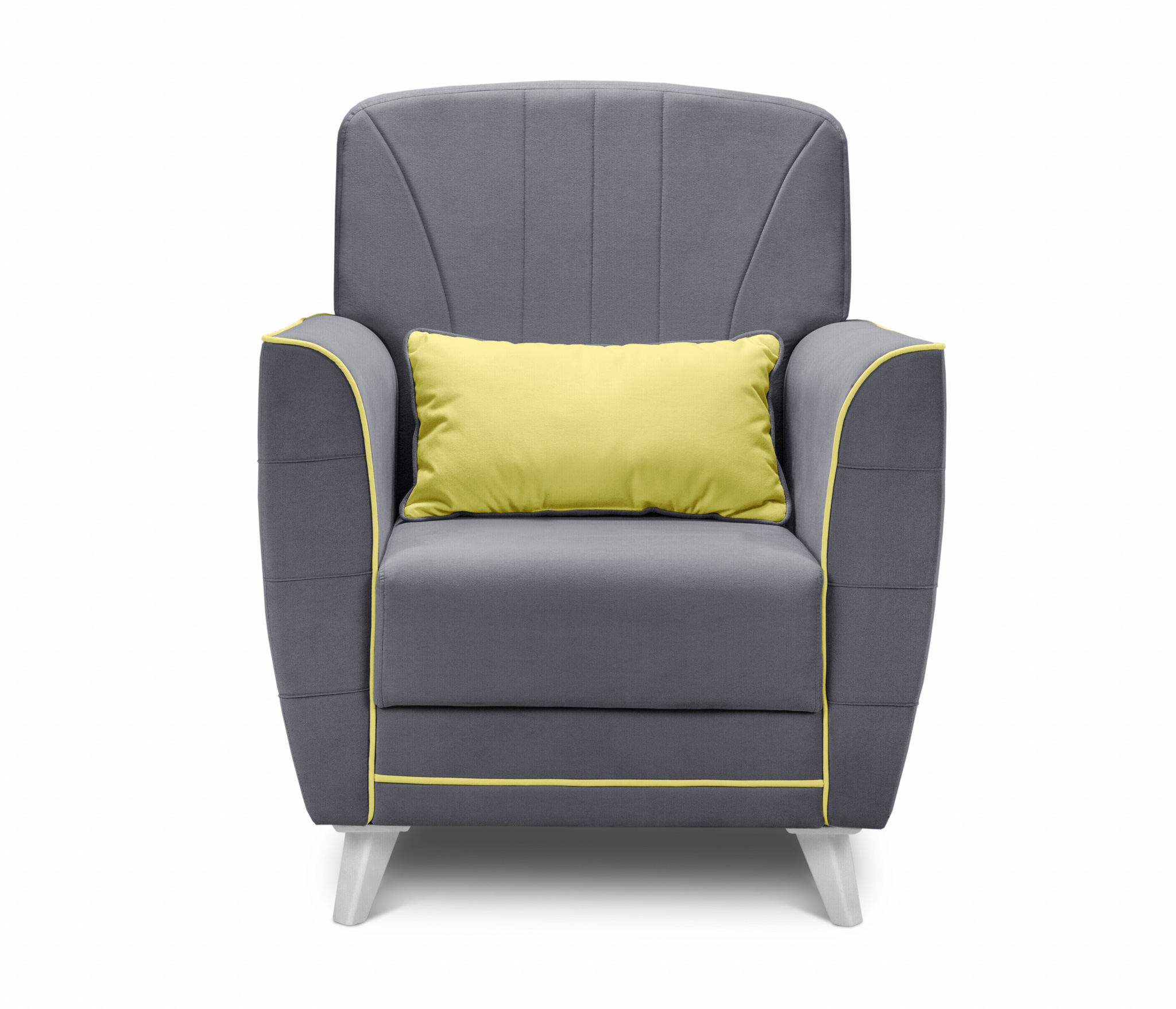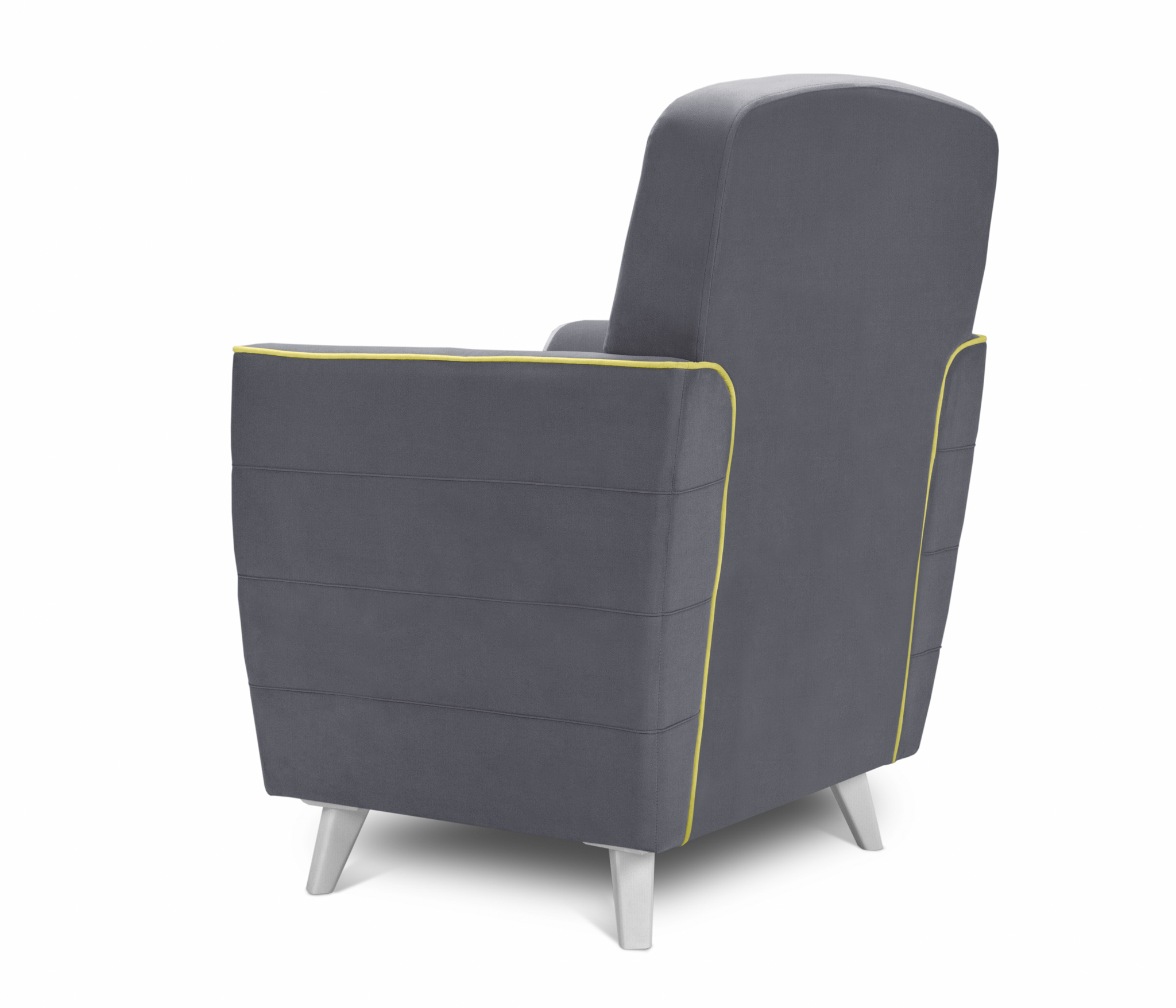 Обивка кресла выполнена в велюре с отличными техническими характеристиками. Контрастный кант и декоративная прострочка на спинке делает модель привлекательной.