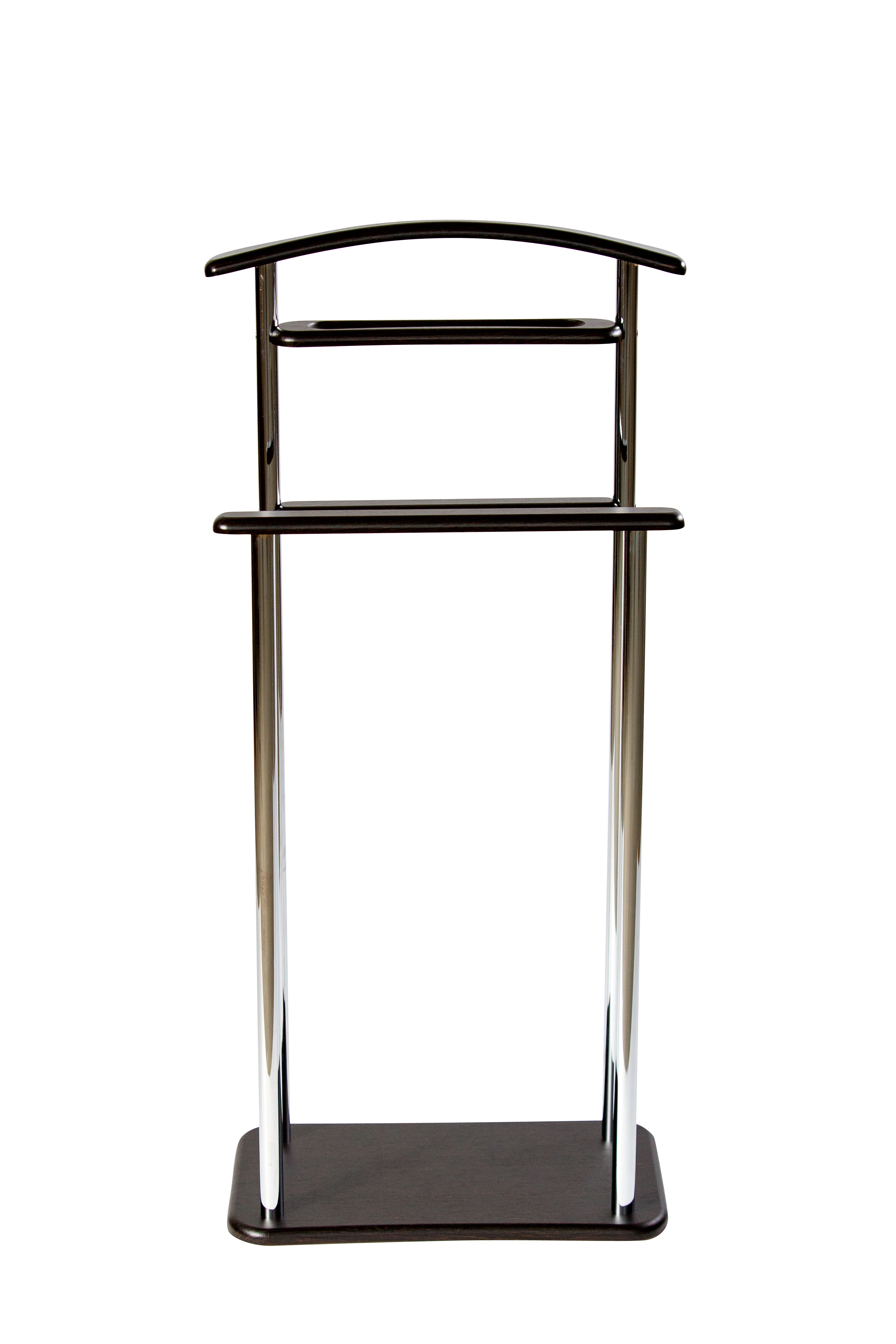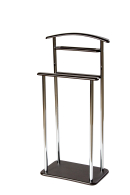 Костюмная вешалка "Элдридж"- современная и функциональная. Благодаря наличию двух планок для брюк и полочки для аксессуаров- данный вариант вешалки костюмной отлично подойдет для аккуратного хранения вещей. Вешалка выполнена из материала МДФ 16 мм в сочетании с хромированной трубой. Высота вешалки1050 мм, ширина основания 295 мм, длина плечика 500 мм.
