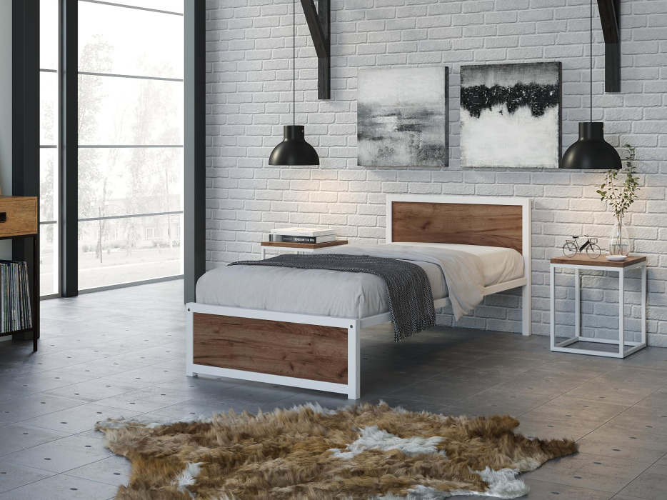 Кровать Титан Лофт 90 без ящиков (белый) (Дуб/крафт/табак)