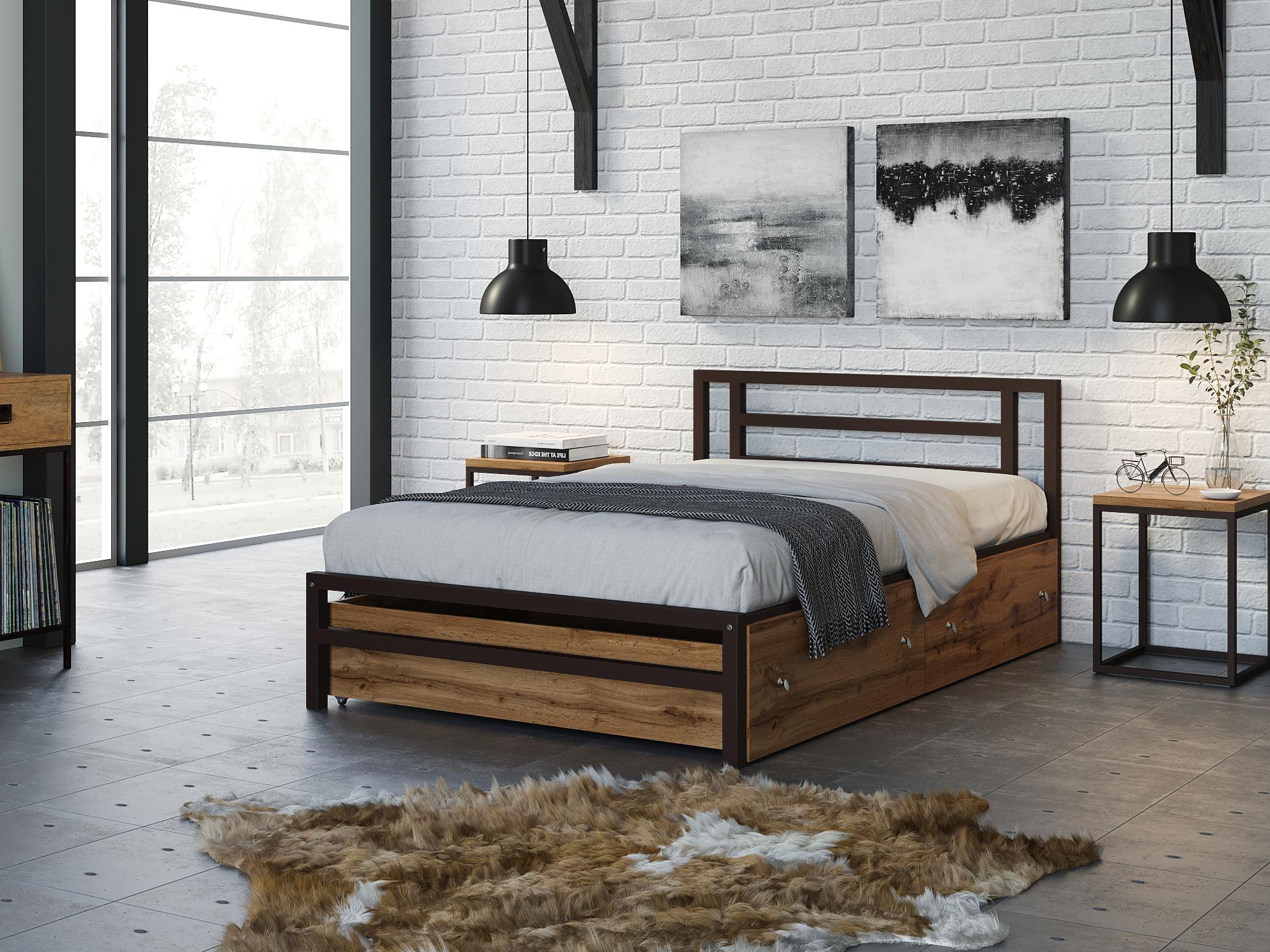 Полутороспальная кровать Титан 120 ящики дуб крафт табак (Коричневый)