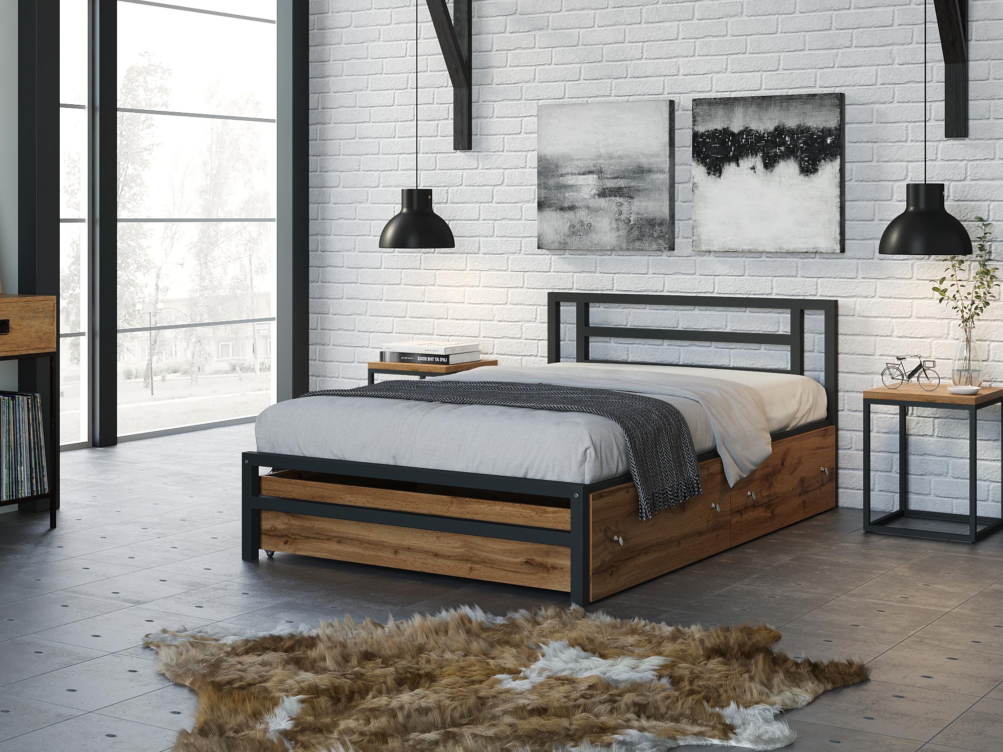 Полутороспальная кровать Титан 120 ящики дуб крафт табак (Темно-серый)