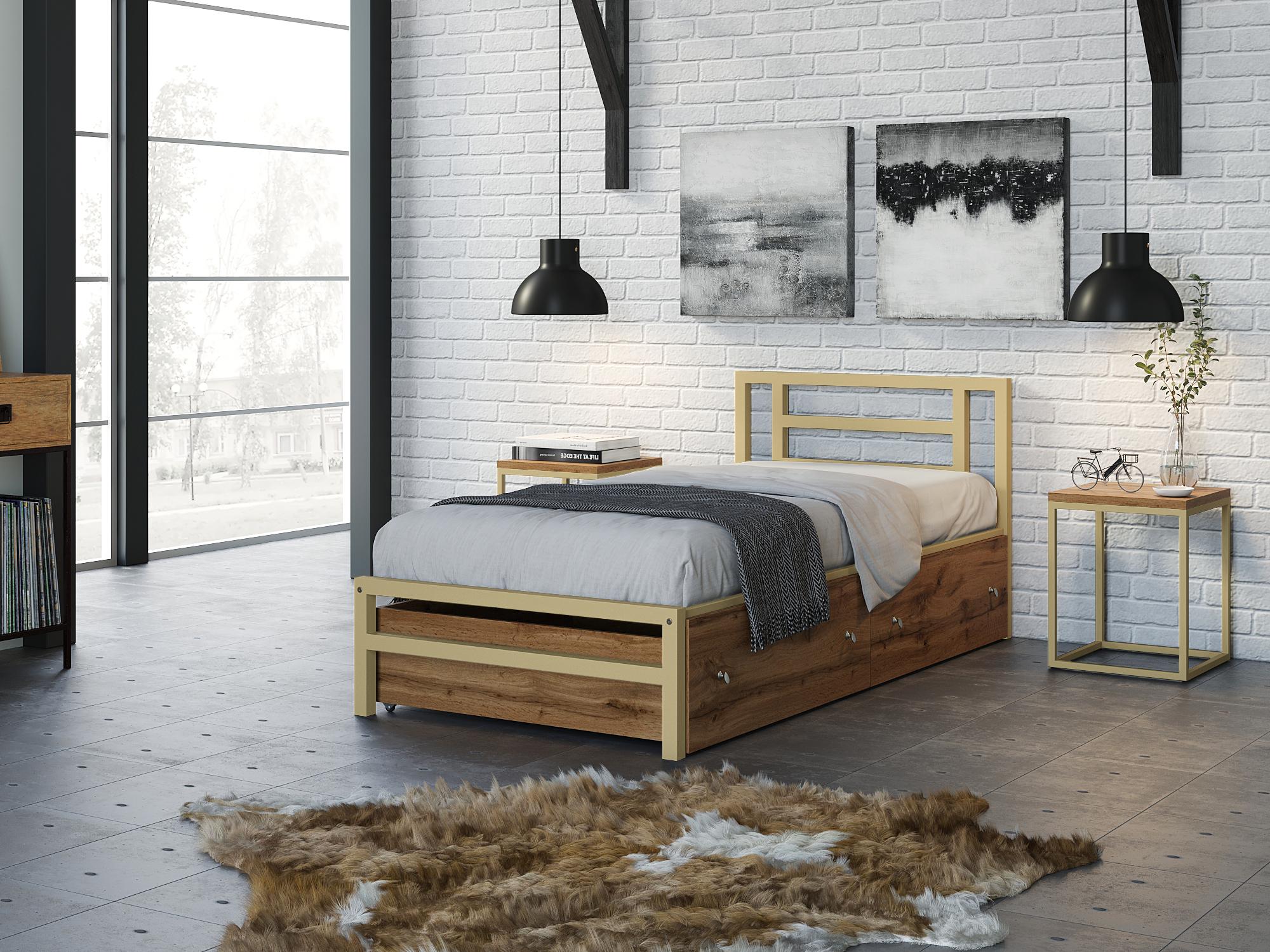 Односпальная кровать Титан 90 ящики дуб крафт табак (Слоновая кость)