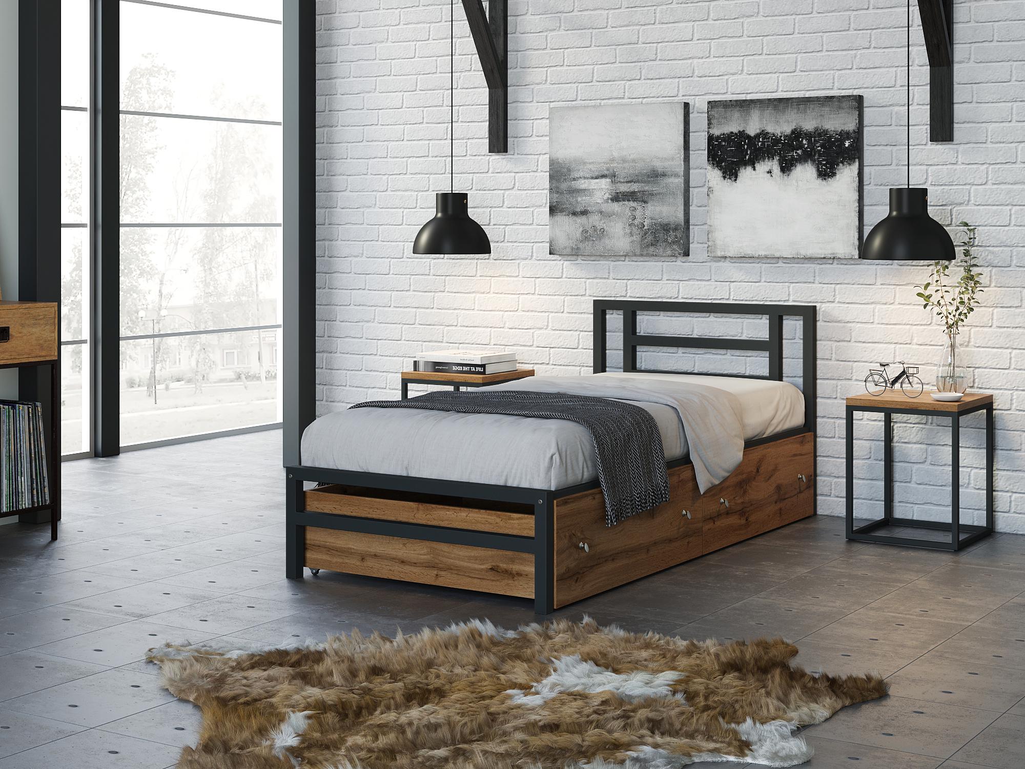 Односпальная кровать Титан 90 ящики дуб крафт табак (Темно-серый)