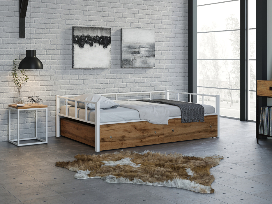 Полутороспальная кровать Арга 120 ящики дуб крафт табак (Белый)