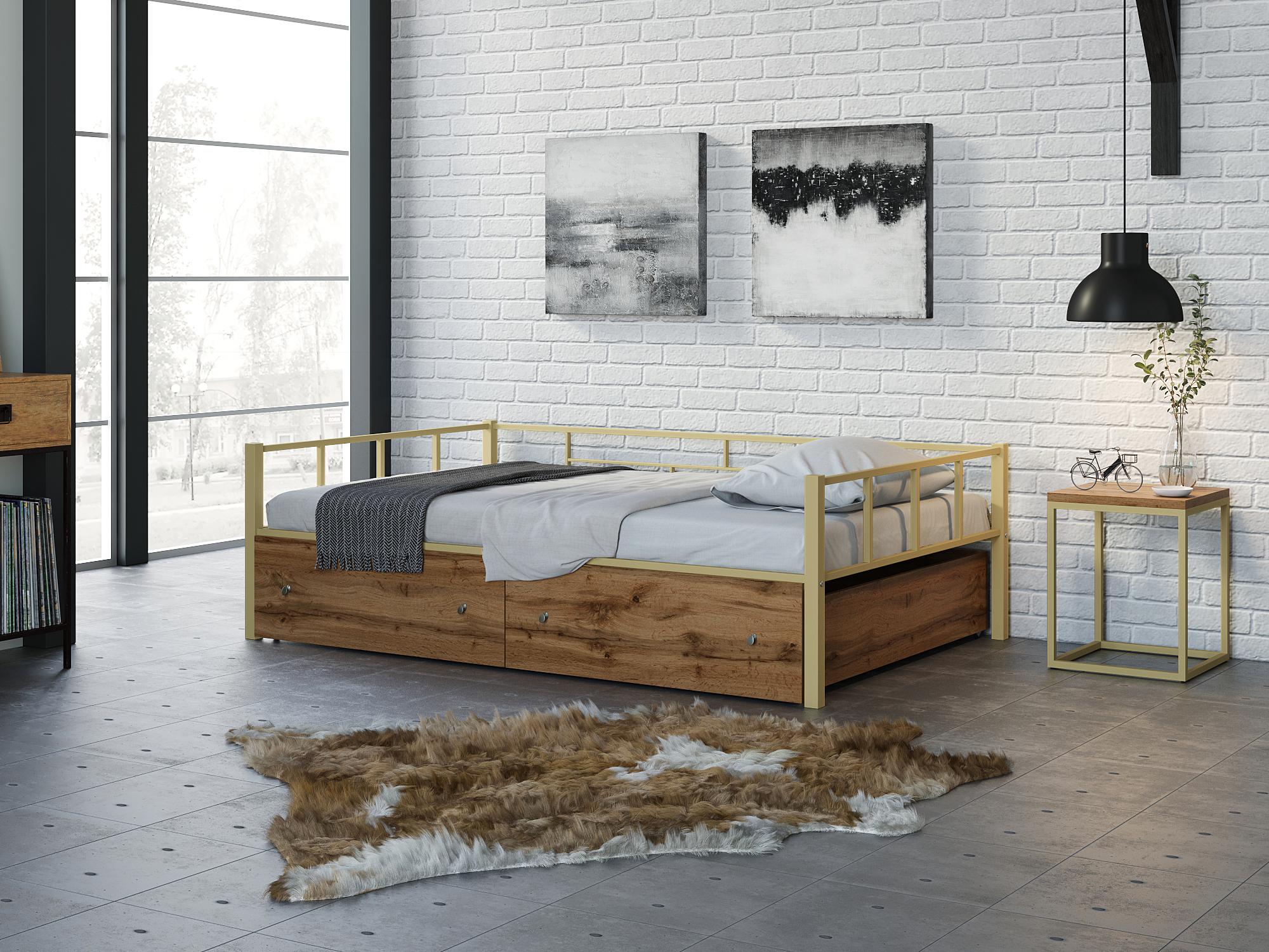 Полутороспальная металлическая кровать Арга 120 от Фабрики мебели 4 Сезона. Каркас выполнен из прочного металла покрытого порошковой краской. Спальное место 120х190 см. Основание сварное из металлических ламелей, максимальная нагрузка до 150 кг. Ножки имеют пластиковые заглушки. В комплект входят два выкатных ящика из ЛДСП 16 мм, без направляющих, на пластиковых колесах.