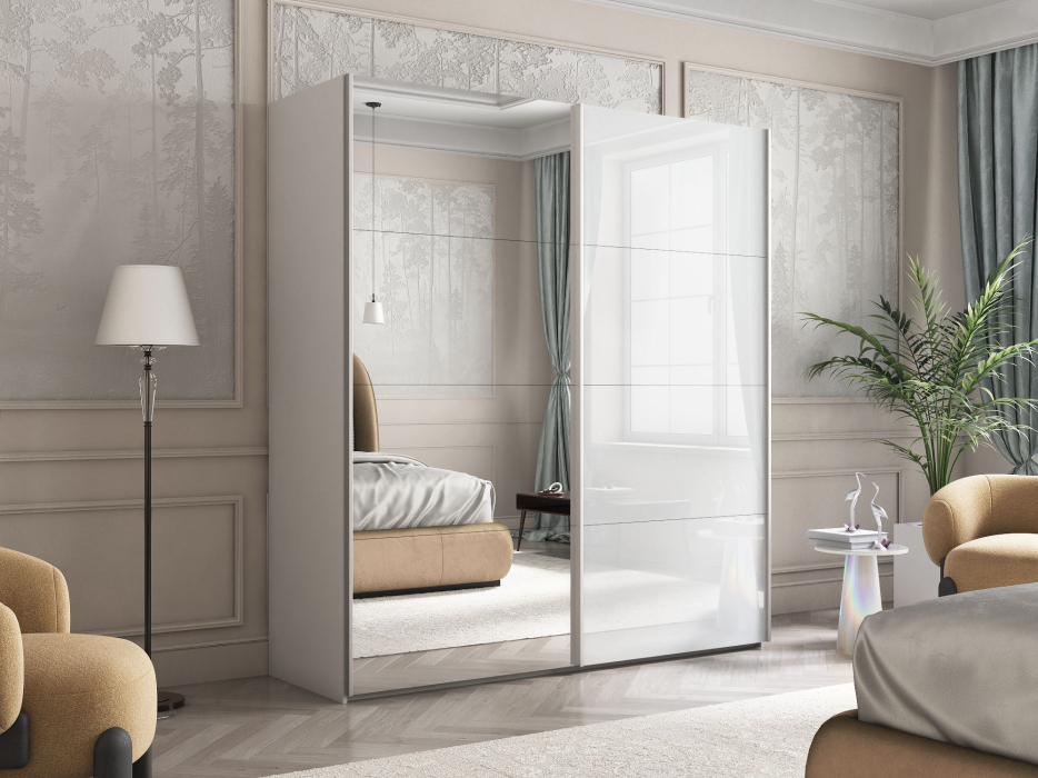 Шкаф Эста дуо Стекло белое/зеркало 2400 х 1800 х 660 Код I0000391769