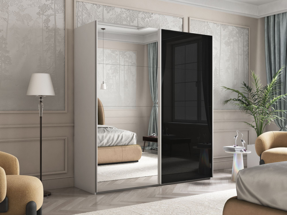 Отзывы о Столплит Шкаф Эста дуо Стекло черное/зеркало 2400 х 1800 х 660 Белый снег