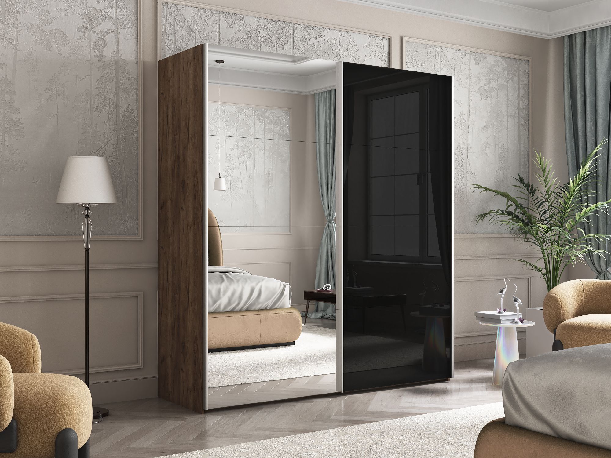 Отзывы о Столплит Шкаф Эста дуо Стекло черное/зеркало 2400 х 1800 х 660 Дуб/крафт/табак