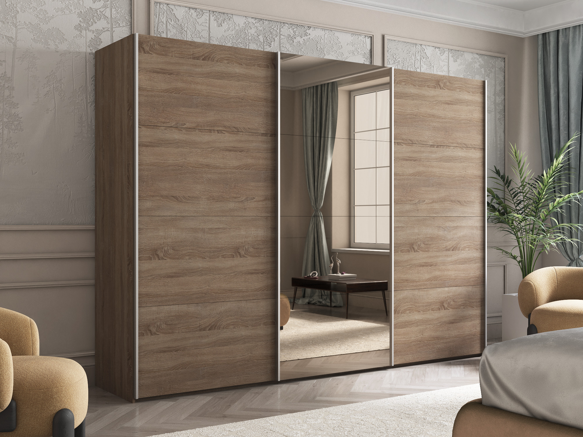 Отзывы о Столплит Шкаф-купе Эста ДСП+Зеркало+ДСП 270х66х240 Дуб Бардолино