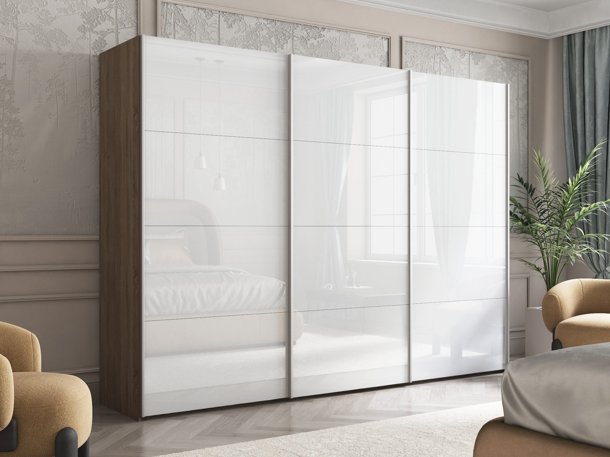 Отзывы о Столплит Шкаф-купе Эста Трио Стекло белое 300х66х240 Дуб Бардолино