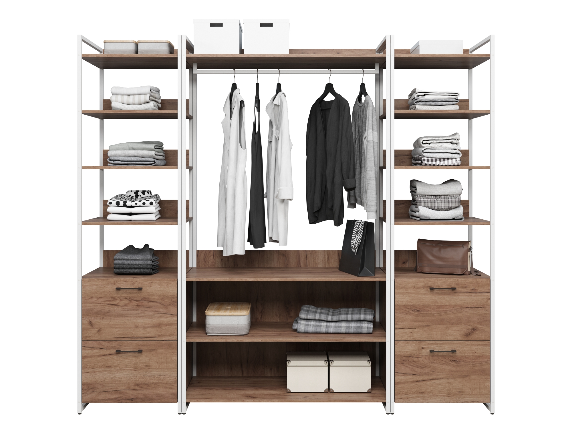 Набор Urban 04 включает в себя стеллаж с штангой для вешалок и двумя открытыми нишами, а так же два стеллажа с полками и выдвижными ящиками. Каркас выполнен из металлического профиля 20х20 мм покрашенного порошковой краской, корпус и фасады из ЛДСП 16 мм. Каждый модуль имеет пластиковые ножки регулируемые по высоте. Все изделия серии Urban Лофт отлично комбинируются друг с другом и идеально подойдут для гардеробной, прихожей или офиса. Все изделия серии Urban Лофт отлично комбинируются друг с другом и идеально подойдут для гардеробной, прихожей или офиса.