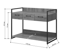 Консоль из серии Urban Лофт. Модель имеет три выдвижных ящика на направляющих и просторную нишу для хранения вещей. Каркас выполнен из металлического профиля 20х20 мм, покрашенного порошковой краской. корпус и ящики из ЛДСП 16 мм. Консоль отлично комбинируется с другими моделями из серии Urban.