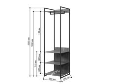 Стеллаж из серии Urban Лофт для хранения. Модель включает в себя штангу для вешалок и три открытых полки для хранения вещей и обуви. Каркас выполнен из металлического профиля 20х20 мм, покрашенного порошковой краской. корпус и ящики из ЛДСП 16 мм. Стеллаж отлично комбинируется с другими моделями из серии Urban.