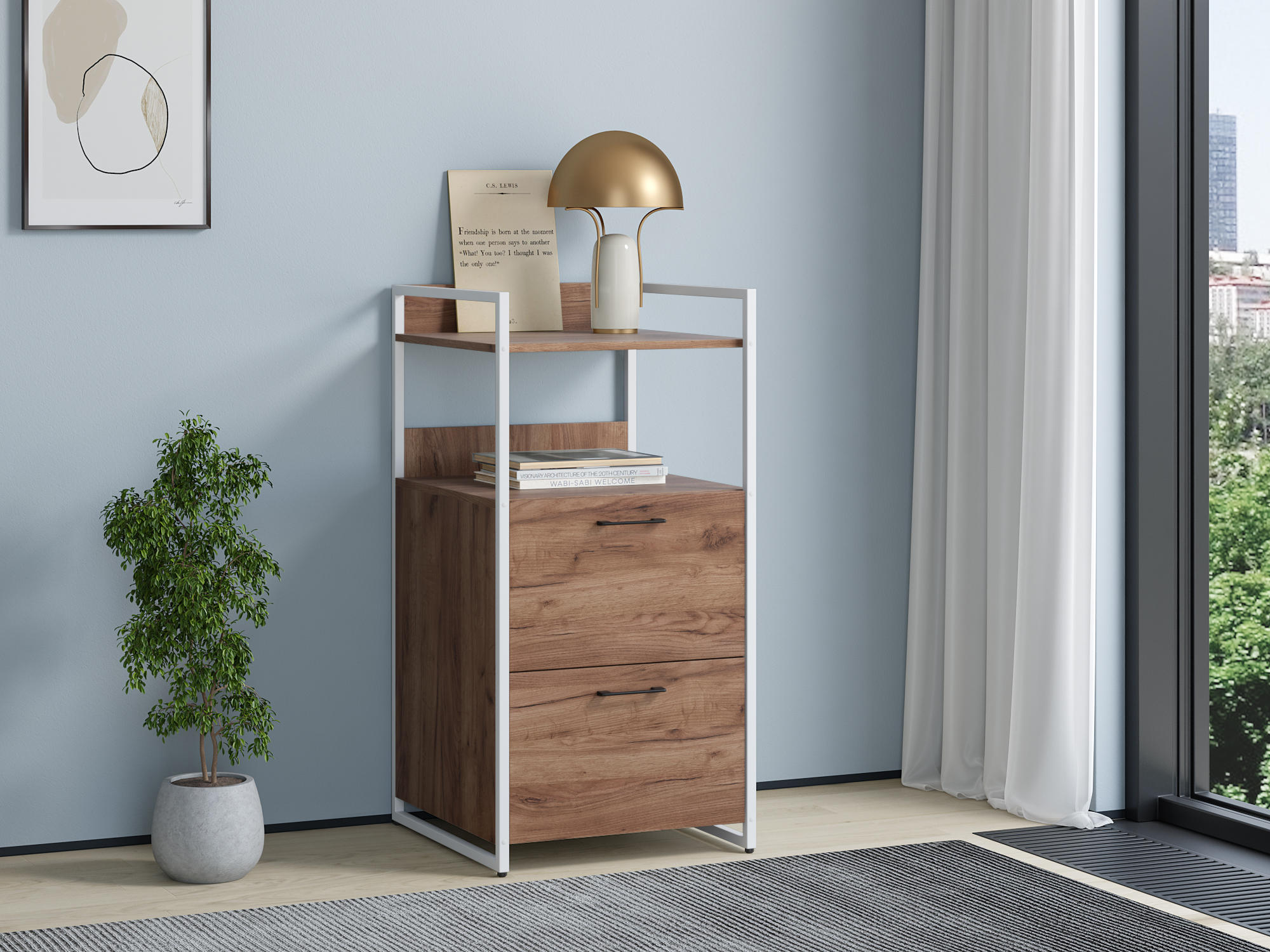 Тумба из серии Urban Лофт для хранения. Модель имеет два выдвижных ящика на направляющих, а так же надстроенную сверху полочку. Каркас выполнен из металлического профиля 20х20 мм, покрашенного порошковой краской. корпус и ящики из ЛДСП 16 мм. Тумба отлично комбинируется с другими моделями из серии Urban.