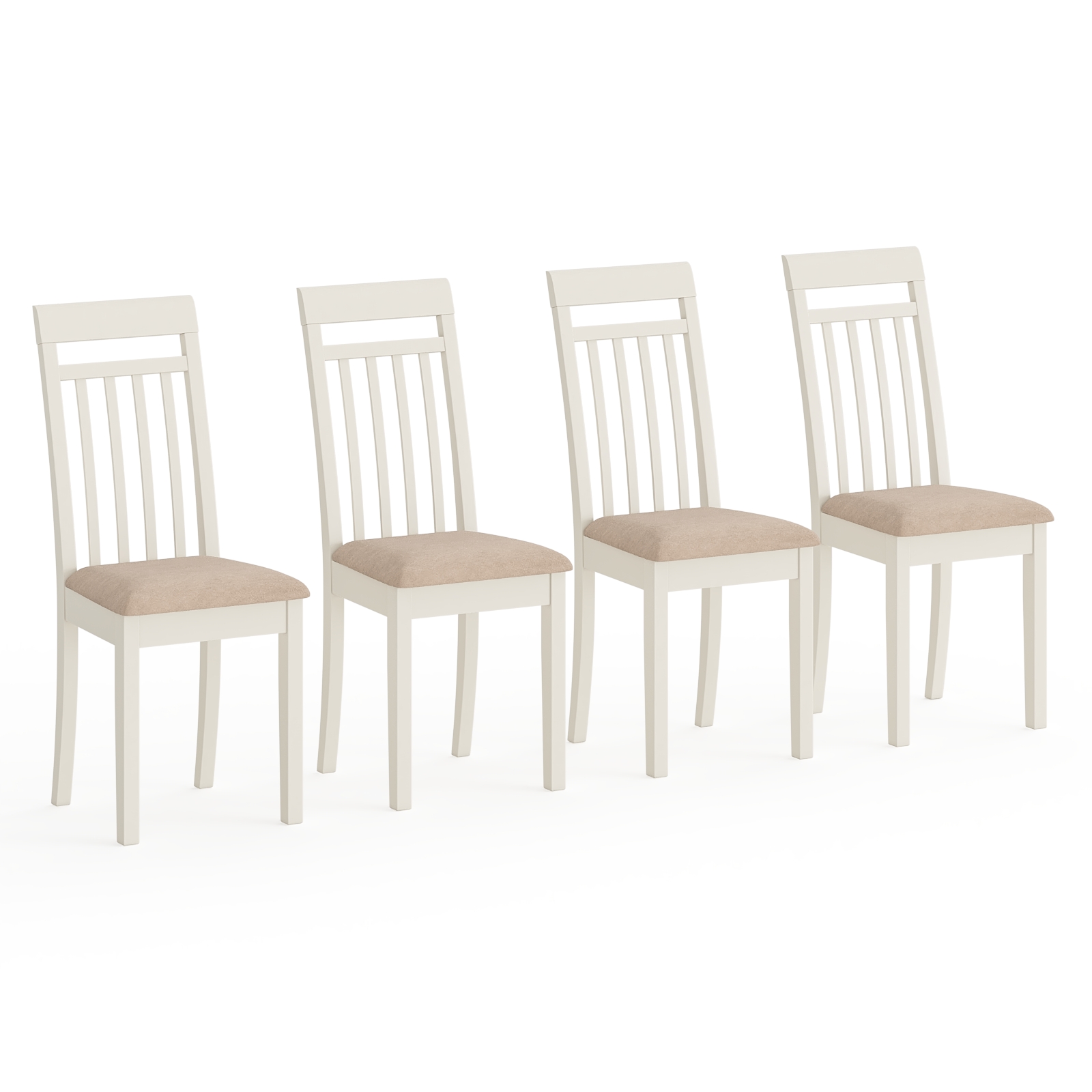 В набор входят 4 стула, что делает его идеальным решением для семьи или небольшой компании. Комплект подойдёт для кухни, гостиной или загородного дома, создавая атмосферу уюта и гармонии. Каркасы стульев, включая спинку, выполнен из натурального массива дерева, окрашенного в белый цвет. Качественная обработка древесины обеспечивает прочность конструкции и долгий срок службы. Спинка выполнена в виде вертикальной рамки с тремя тонкими планками и одной горизонтальной перекладиной вверху. Такая комбинация делает её визуально лёгкой, но при этом прочной. Обивка мягких сидений выполнена из ткани велюр серого оттенка 63, которая отличается мягкостью и износостойкостью. Велюр приятен на ощупь, отличается высокой прочностью и простотой ухода. Наполнение сидений – гипоаллергенный, высокоэластичный пенополиуретан, создающий ровную, упругую поверхность.