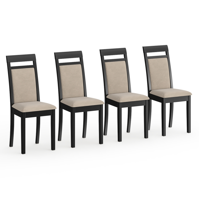 В набор входят 4 стула, что делает комплект идеальным для полноценного обеденного стола. Эти модели прекрасно впишутся в интерьер кухни или обеденной зоны, создавая уют. Корпуса стульев Гольф-12 выполнены из массива дерева, окрашенного в оттенок венге. Качественная обработка древесины обеспечивает прочность конструкции и долгий срок службы. Спинки выполнены из массива берёзы с мягкими вставками, обтянутыми велюром. Высокая форма и лёгкий изгиб обеспечивают удобную опору для спины и комфорт при длительном сидении. Вставки спинок и обивки сидений выполнены из велюра капучино 25 — мягкого, приятного на ощупь и практичного. Ткань велюр устойчива к истиранию, легко чистится и выглядит стильно. Наполнение сидений стульев – гипоаллергенный, высокоэластичный пенополиуретан, создающий ровную, упругую поверхность.