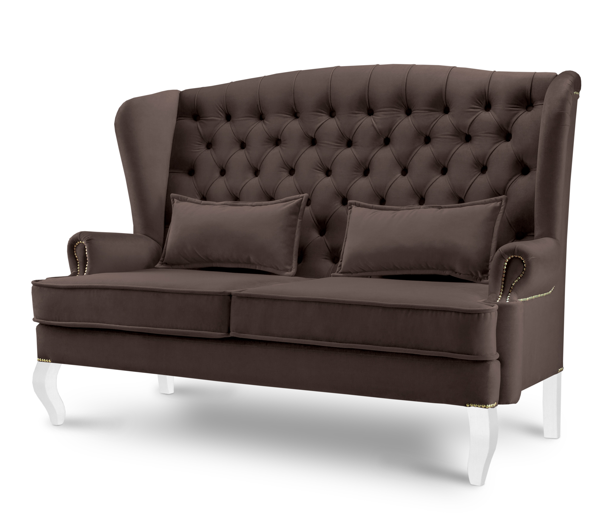 Высокая спинка дивана Лорд декорирована каретной стяжкой ручной работы.