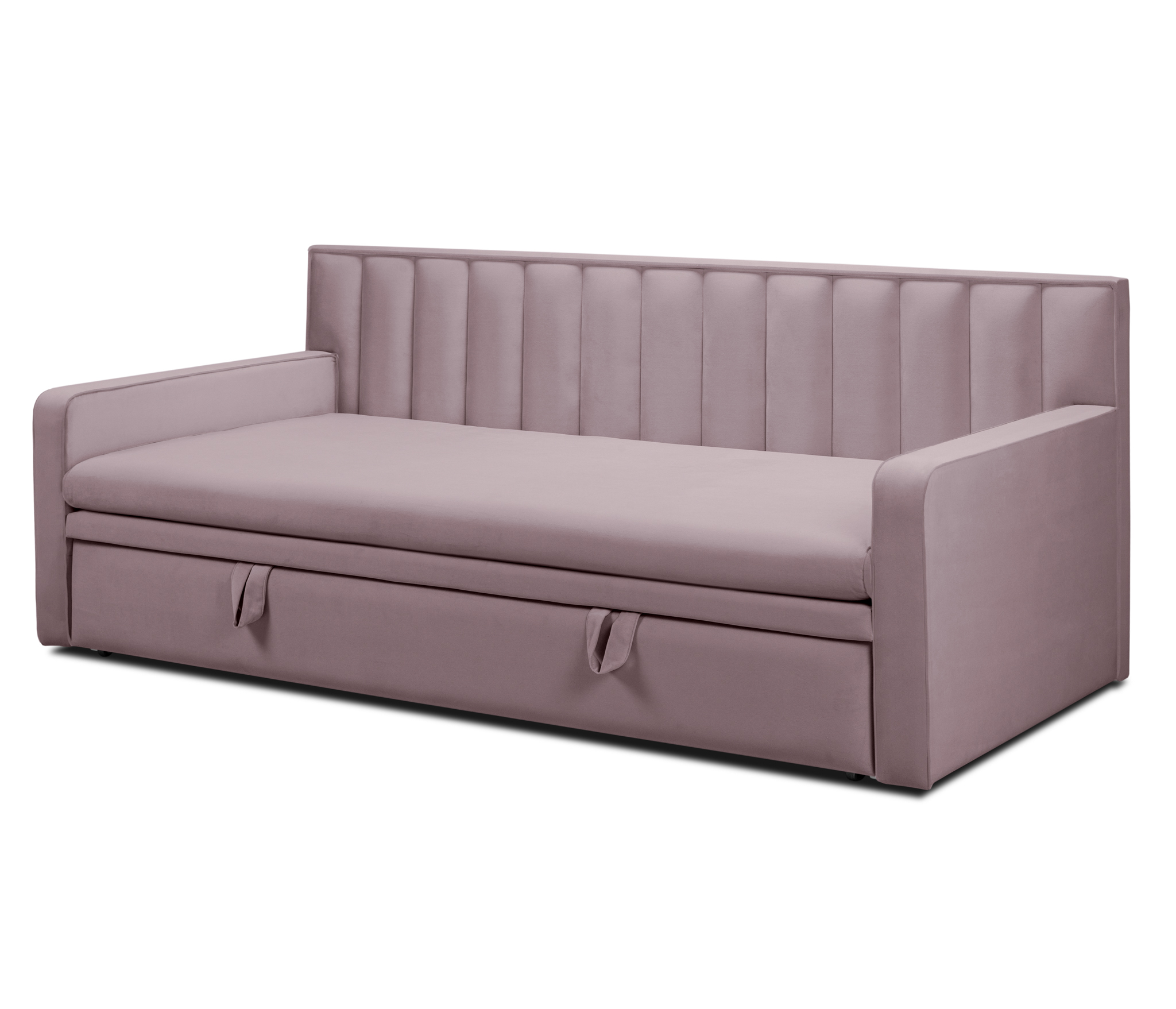 Широкие боковины и особая техника раскладки позволяет использовать кровать днём, как стильный диван.