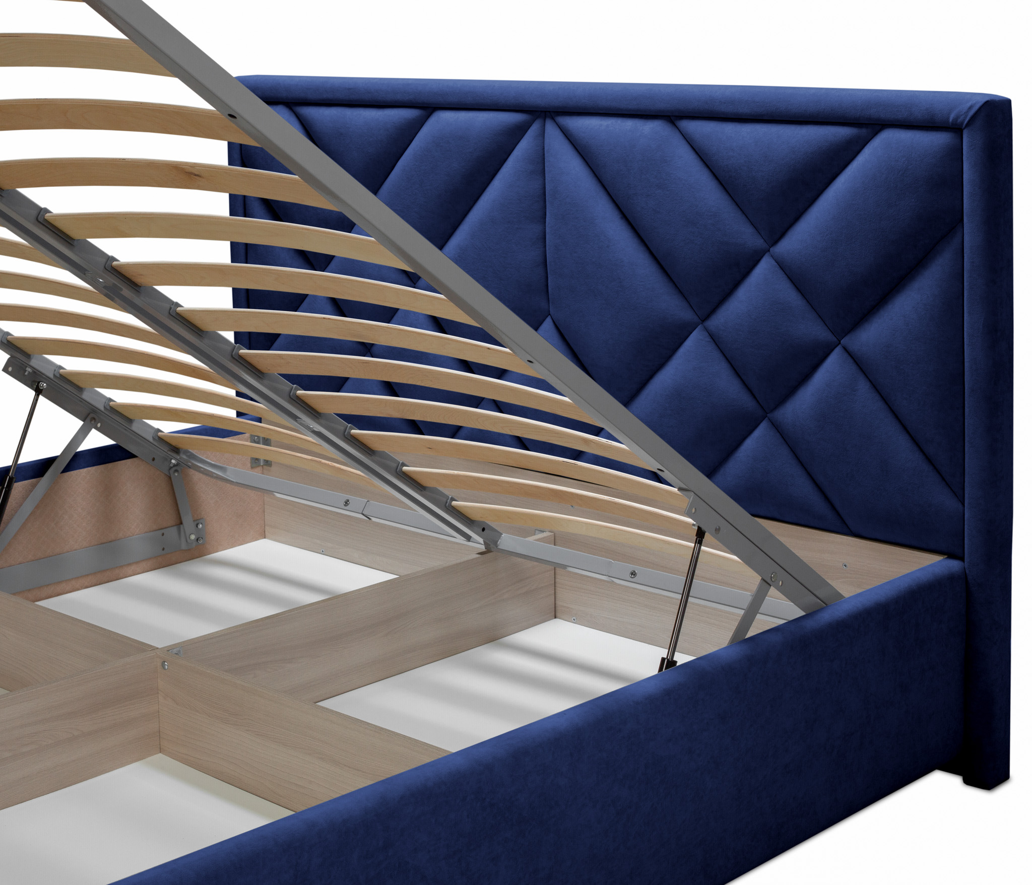 Подъемный механизм позволяет вам без труда поднять спальное место и получить доступ к большому ящику для хранения.