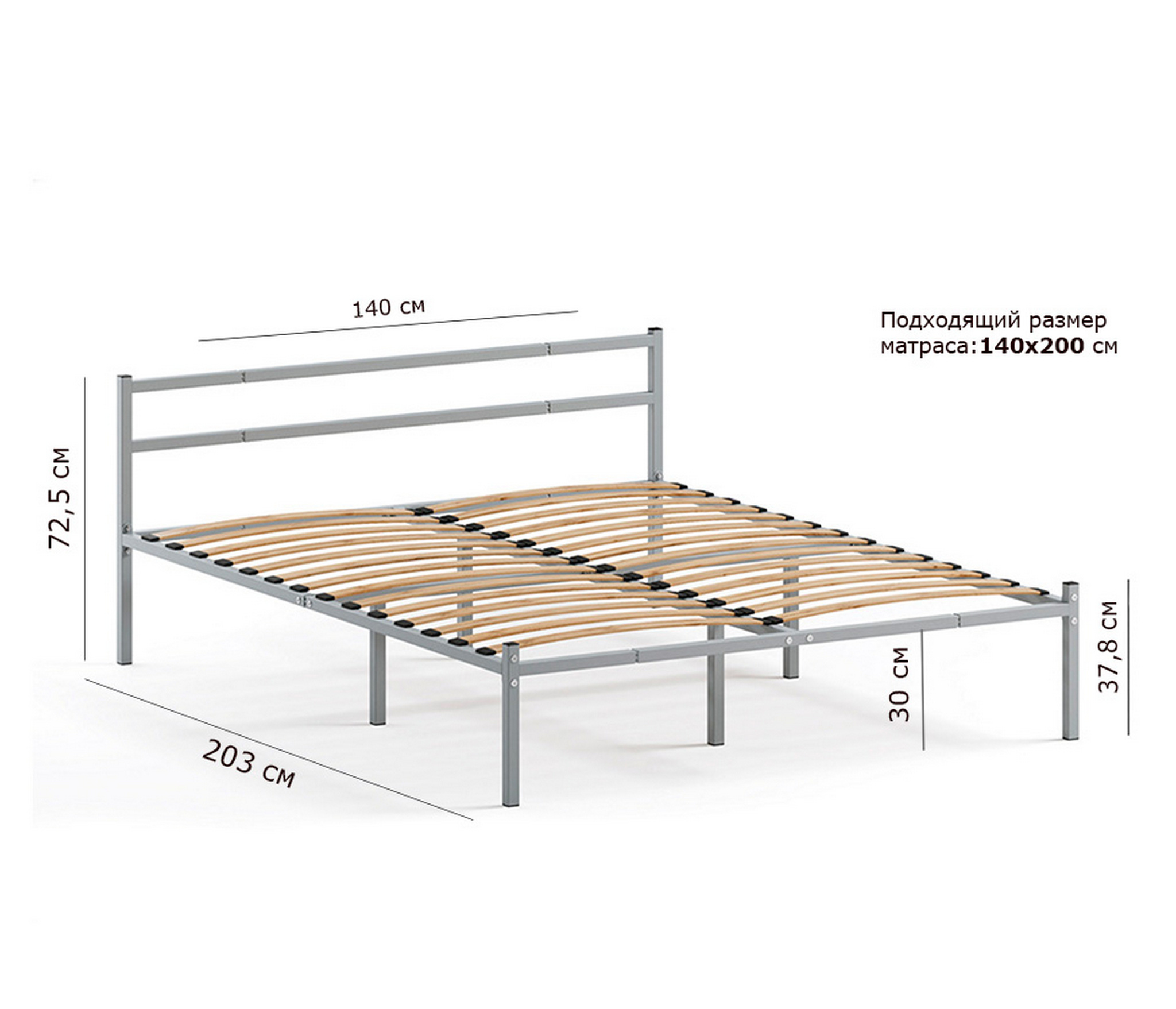 Размеры кровати (ШхВхГ) 140х30х200 см