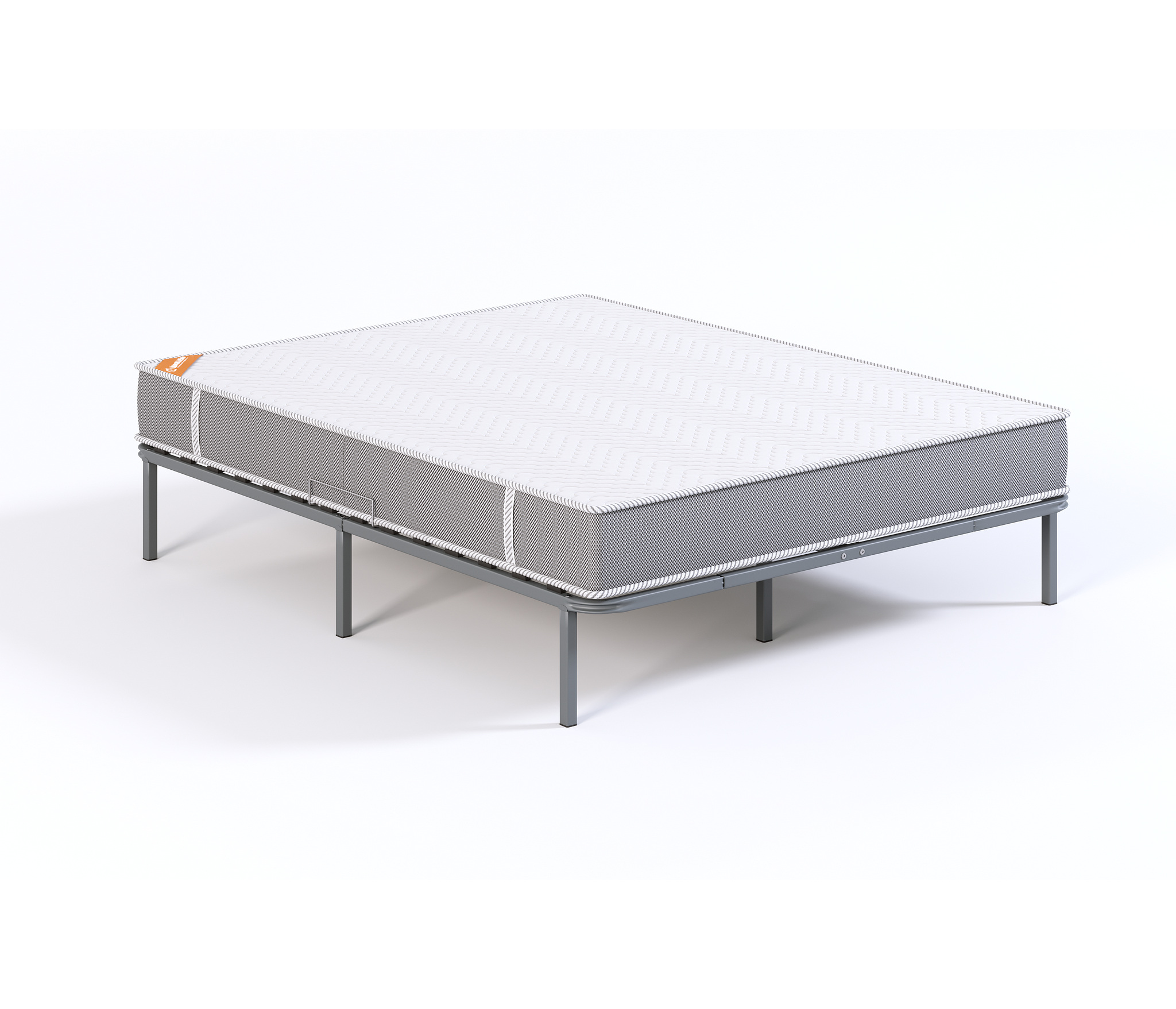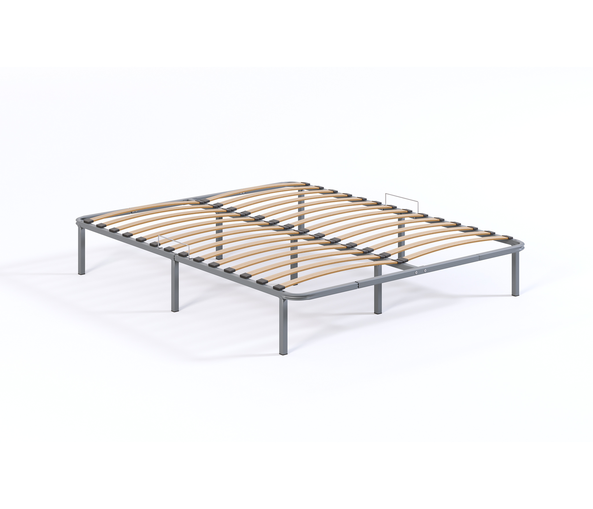 Разборная компактная двухспальная кровать металлическая без спинки с анатомическим основанием и держателями для матраса (2 шт.). Матрас в комплект не входит.