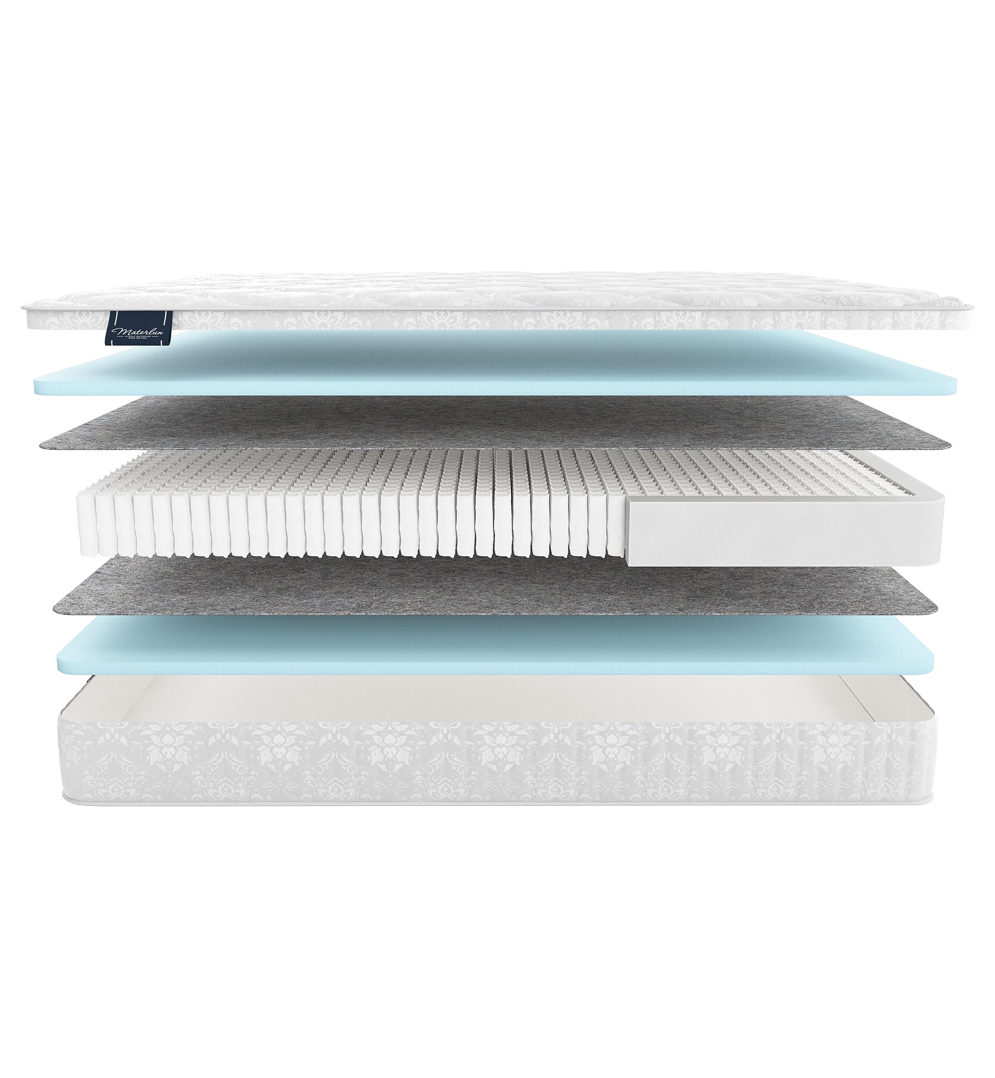 ● Feltro Termico — плотный термофиксированный фетр из шерсти, пуха и хлопка. Мы прокладываем слой фетра между пружинами и наполнителями. Материал защищает слои от давления пружинами, поэтому матрас служит дольше, сохраняет упругость и ортопедические свойства.