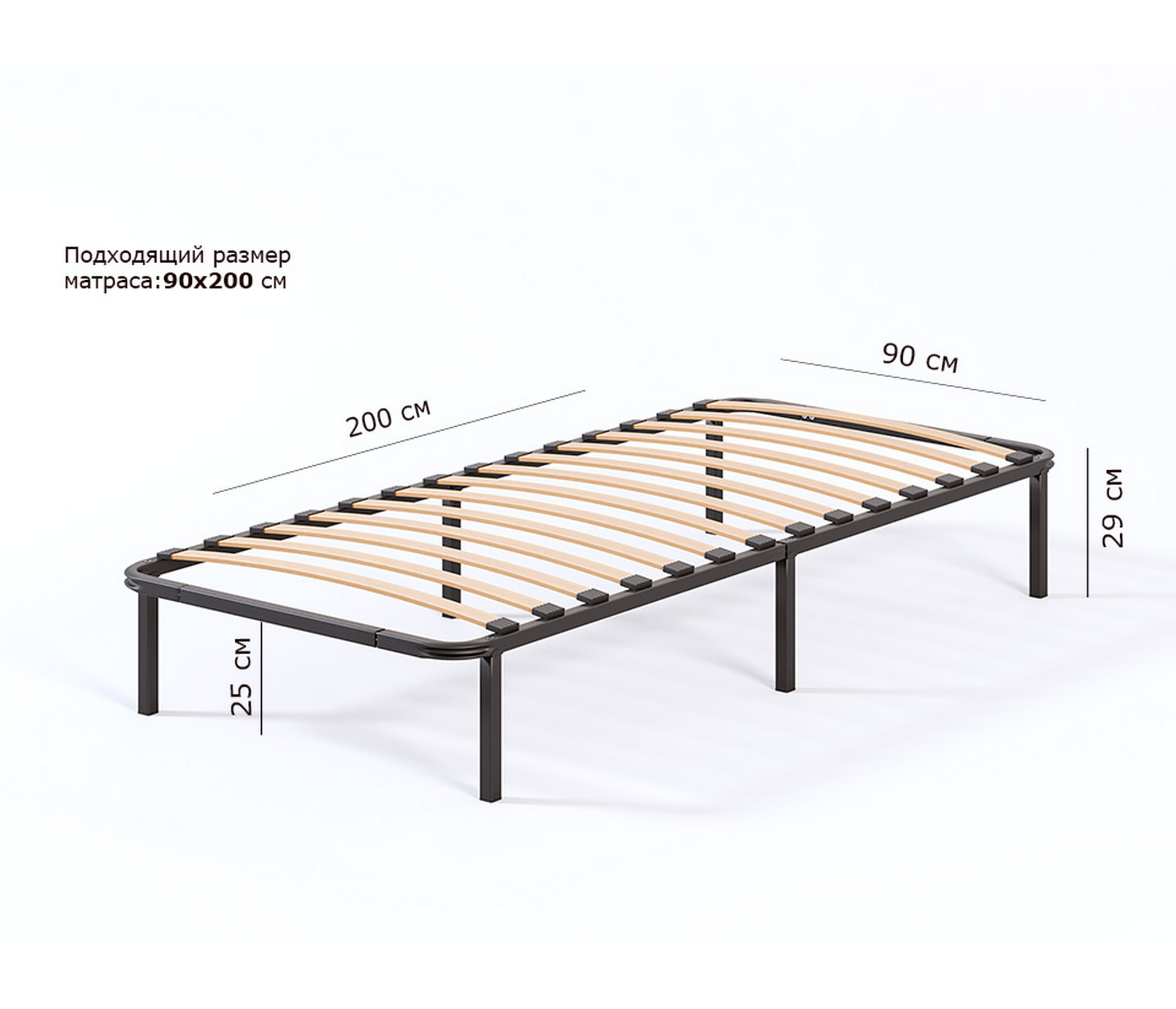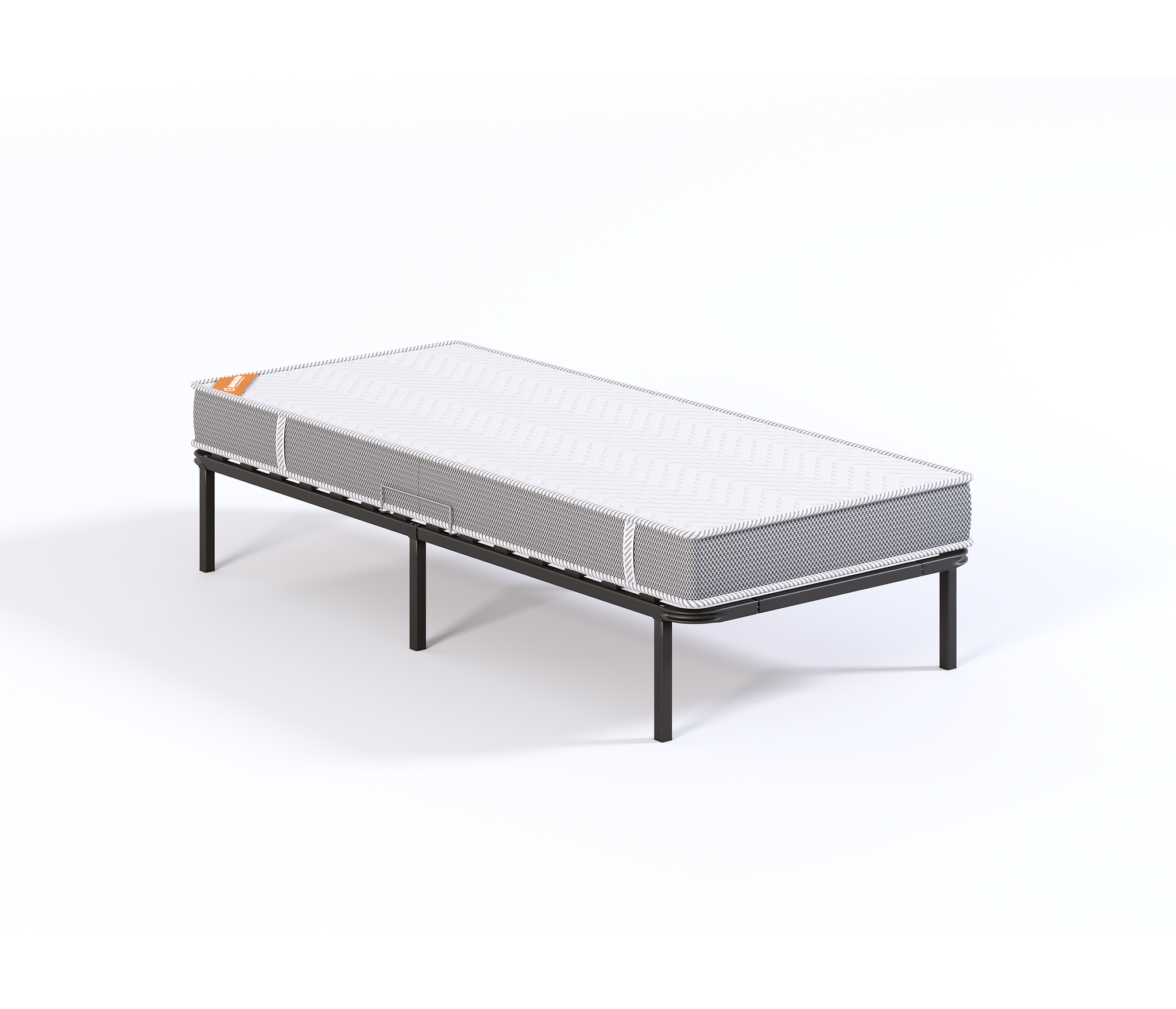 Разборная компактная Односпальная кровать металлическая без спинки с анатомическим основанием и держателями для матраса (2 шт.). Матрас в комплект не входит.
