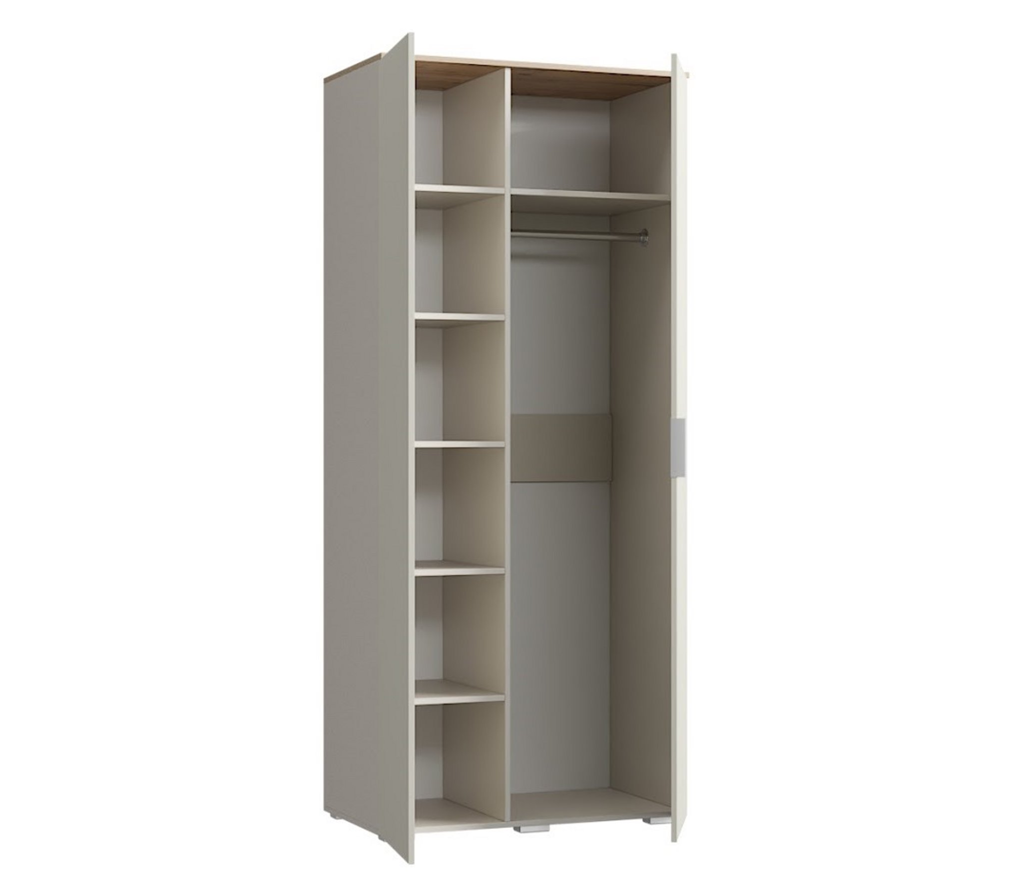 Шкаф красивый, на первый взляд вызывает восторг, но позже вылезают минусы при ежедневном использовании. Двери тяжелые, а стенки тонкие, в следствии чего дверь от своим весом вырывает петли из стенки шкафа. Стенки очень тонкие и не сказала бы, что качественные, т.к. опилки так и сыпятся из под петель. Шкафу пол года, а дверь уже еле держится.