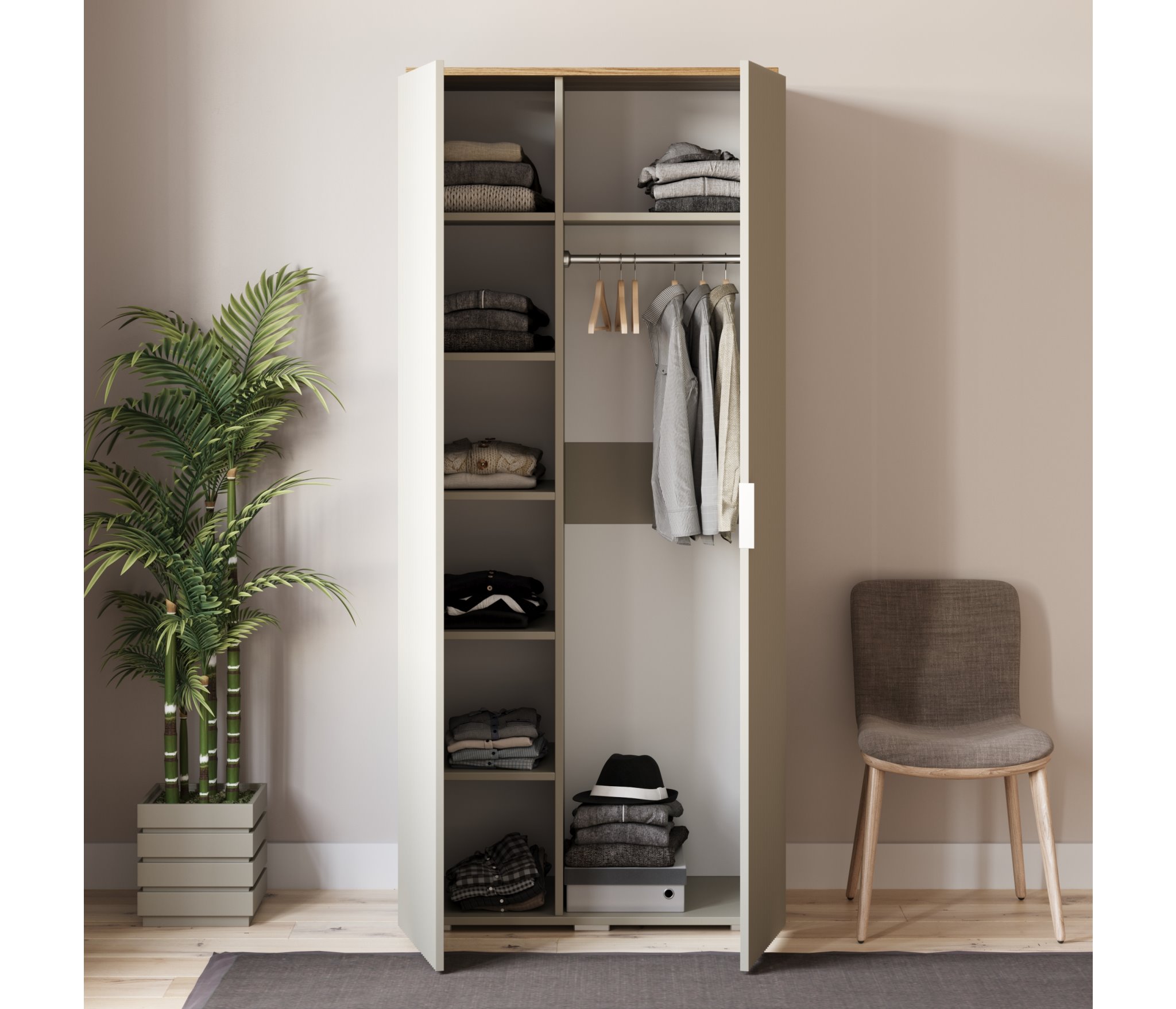Шкаф распашной Ингрия выполнен из ЛДСП класса эмиссии E1, фасады МДФ покрытые матовой пленкой.