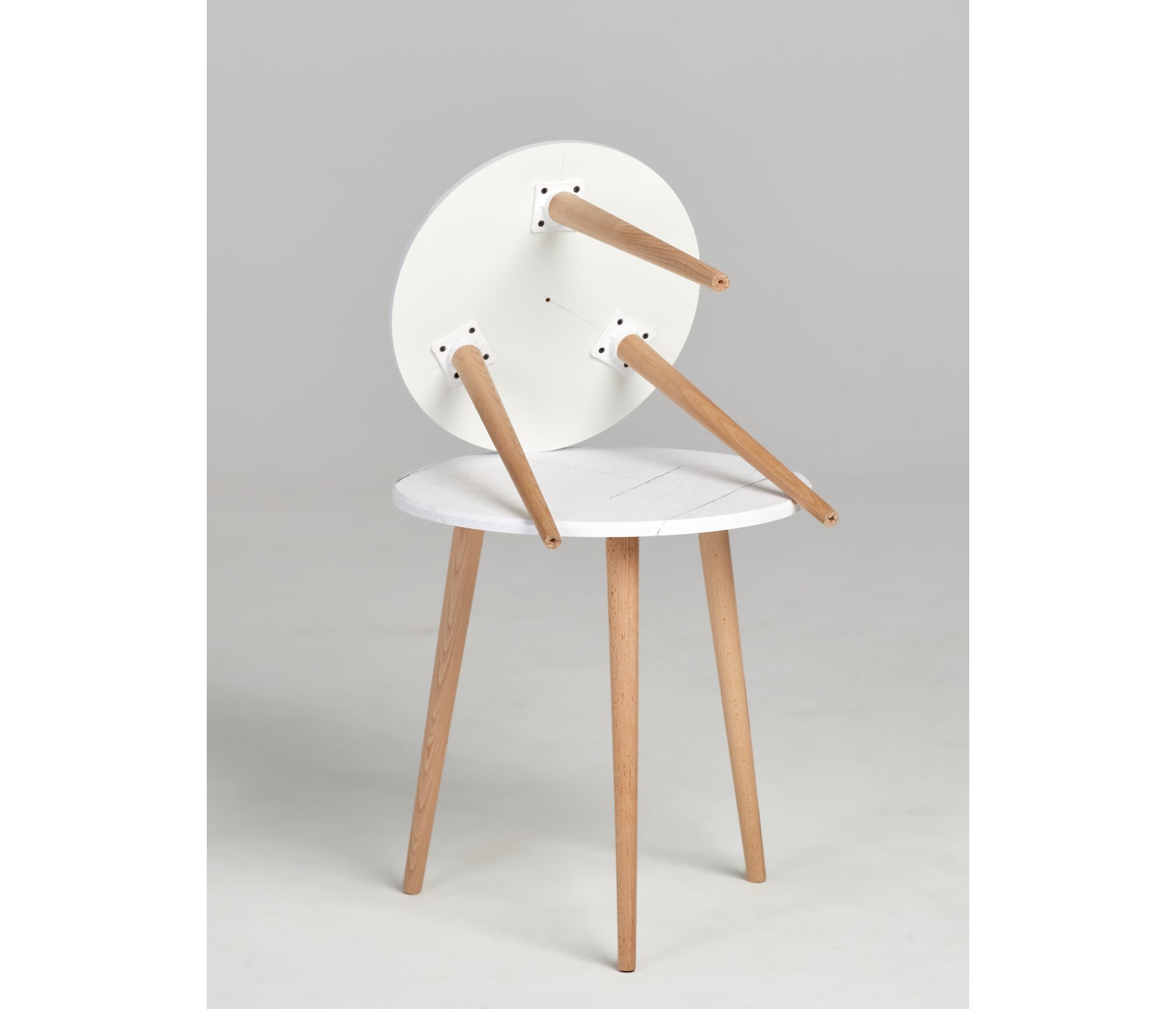 Столик Альфа, выполненные в скандинавском стиле, органично дополнят интерьер любой комнаты. Ножки из массива бука.