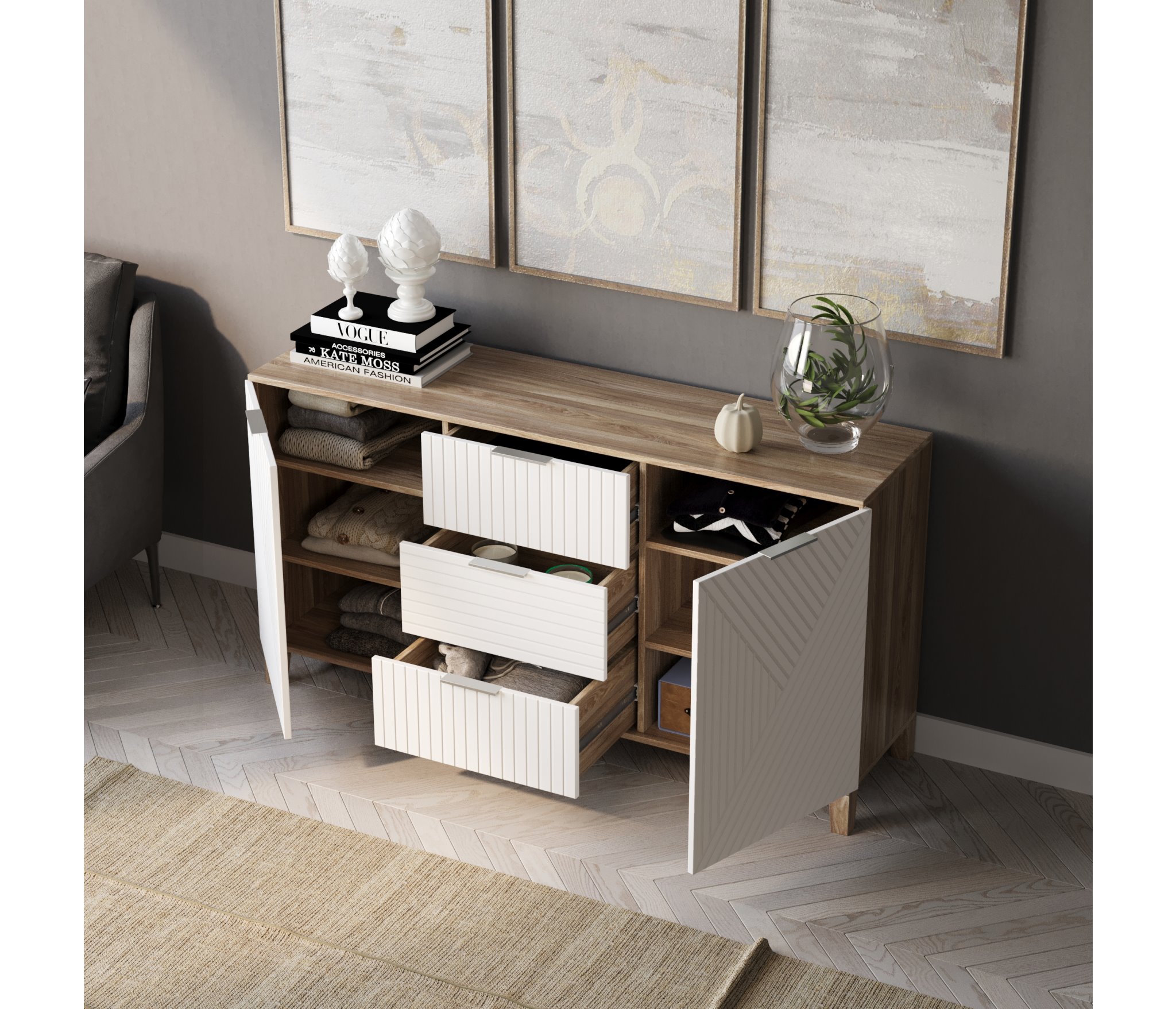 Комод ""Марвин"" выполнен из ЛДСП класса эмиссии E1, фасады МДФ покрытые матовой пленкой. Ножки выполнены из массива бука.