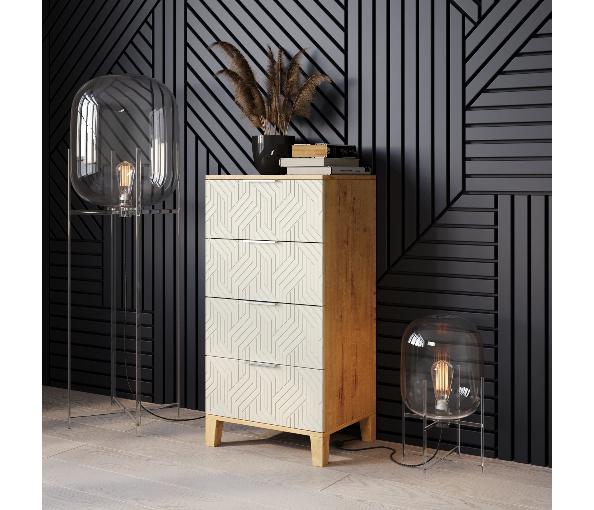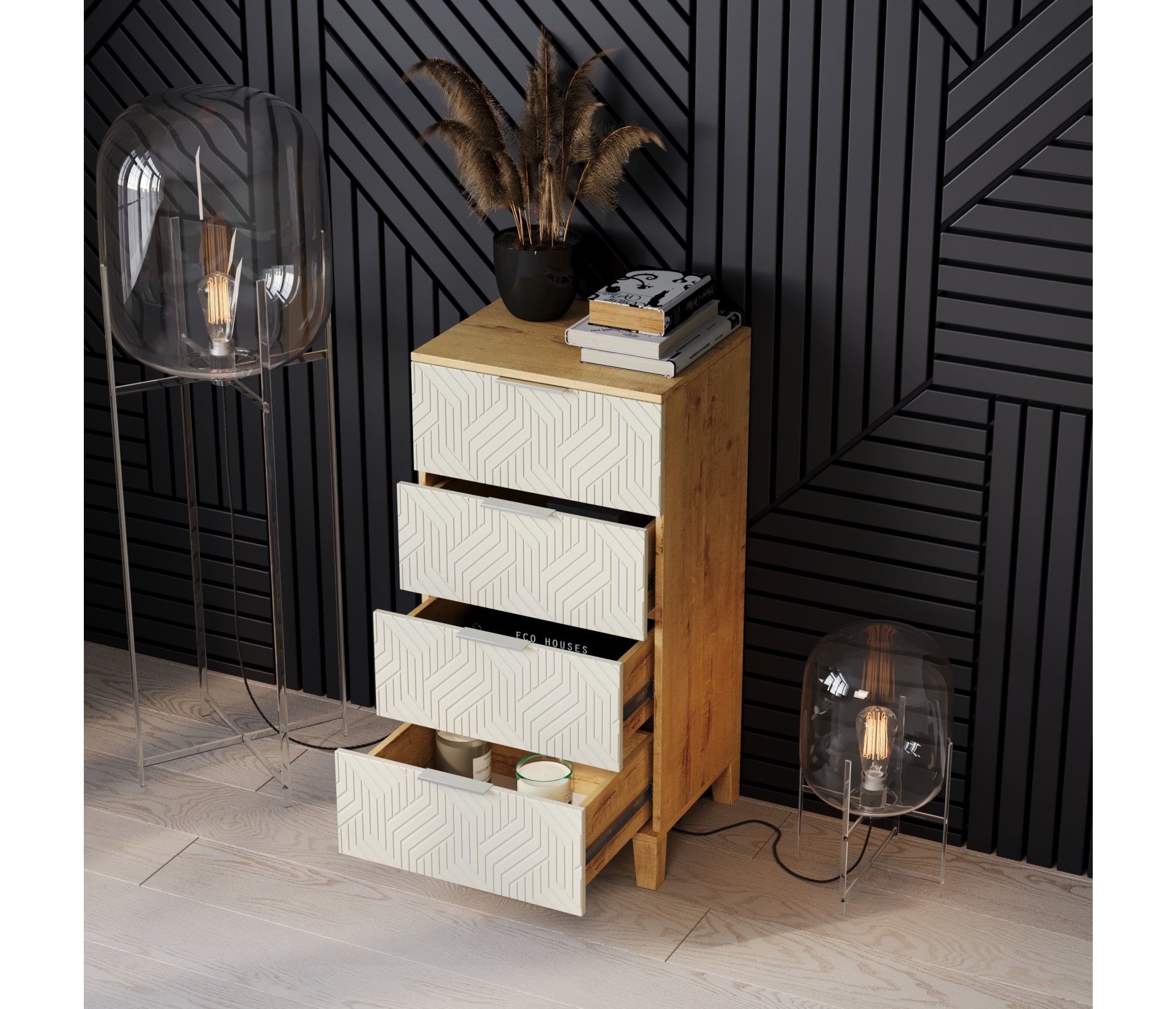 Комод ""Марвин"" выполнен из ЛДСП класса эмиссии E1, фасады МДФ покрытые матовой пленкой. Ножки выполнены из массива бука.