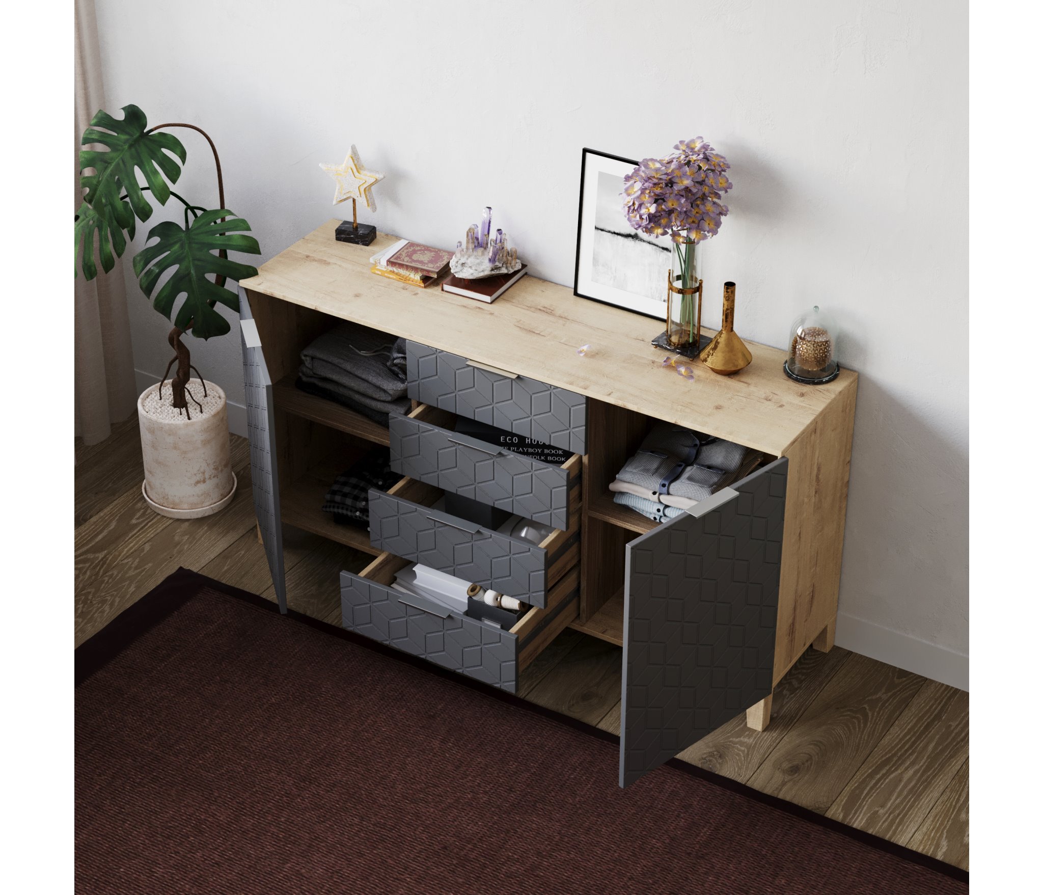 Комод ""Марвин"" выполнен из ЛДСП класса эмиссии E1, фасады МДФ покрытые матовой пленкой. Ножки выполнены из массива бука.