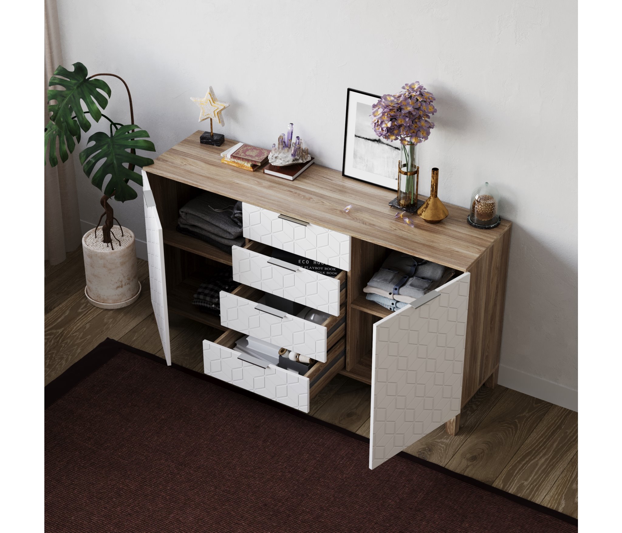 Комод ""Марвин"" выполнен из ЛДСП класса эмиссии E1, фасады МДФ покрытые матовой пленкой. Ножки выполнены из массива бука.