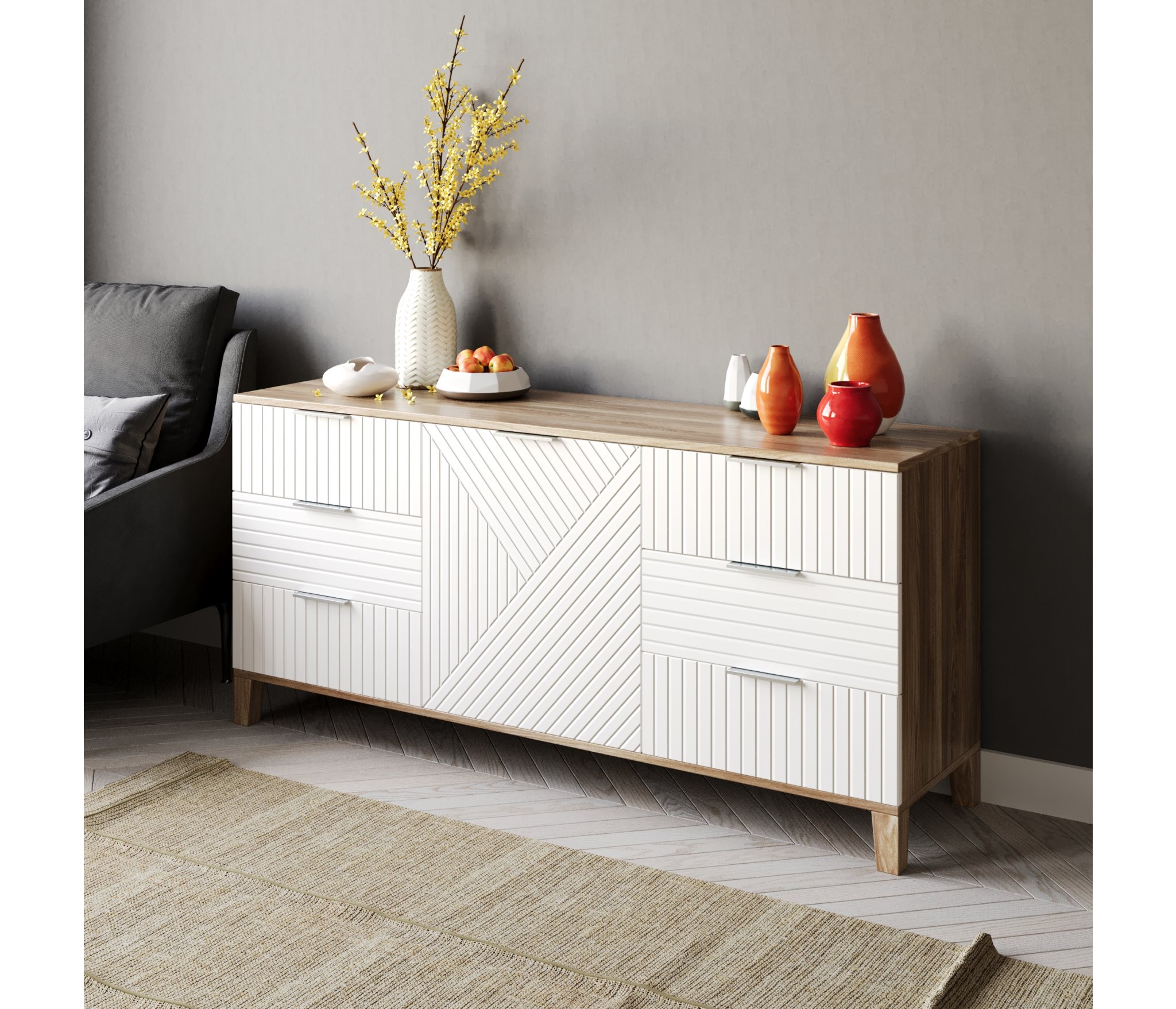 Комод ""Марвин"" выполнен из ЛДСП класса эмиссии E1, фасады МДФ покрытые матовой пленкой. Ножки выполнены из массива бука.