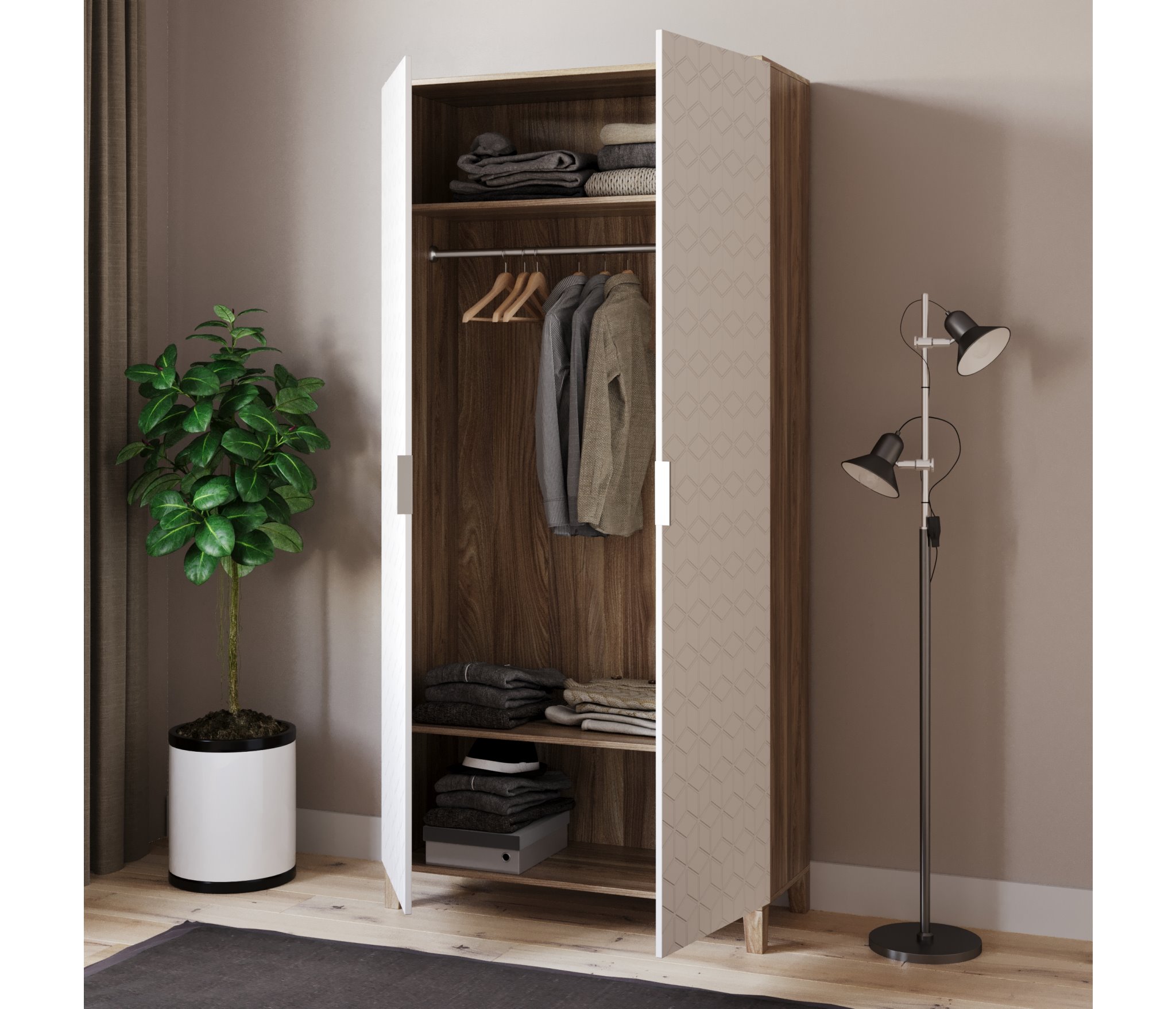 Шкаф распашной Марвин 2 (Молочный)