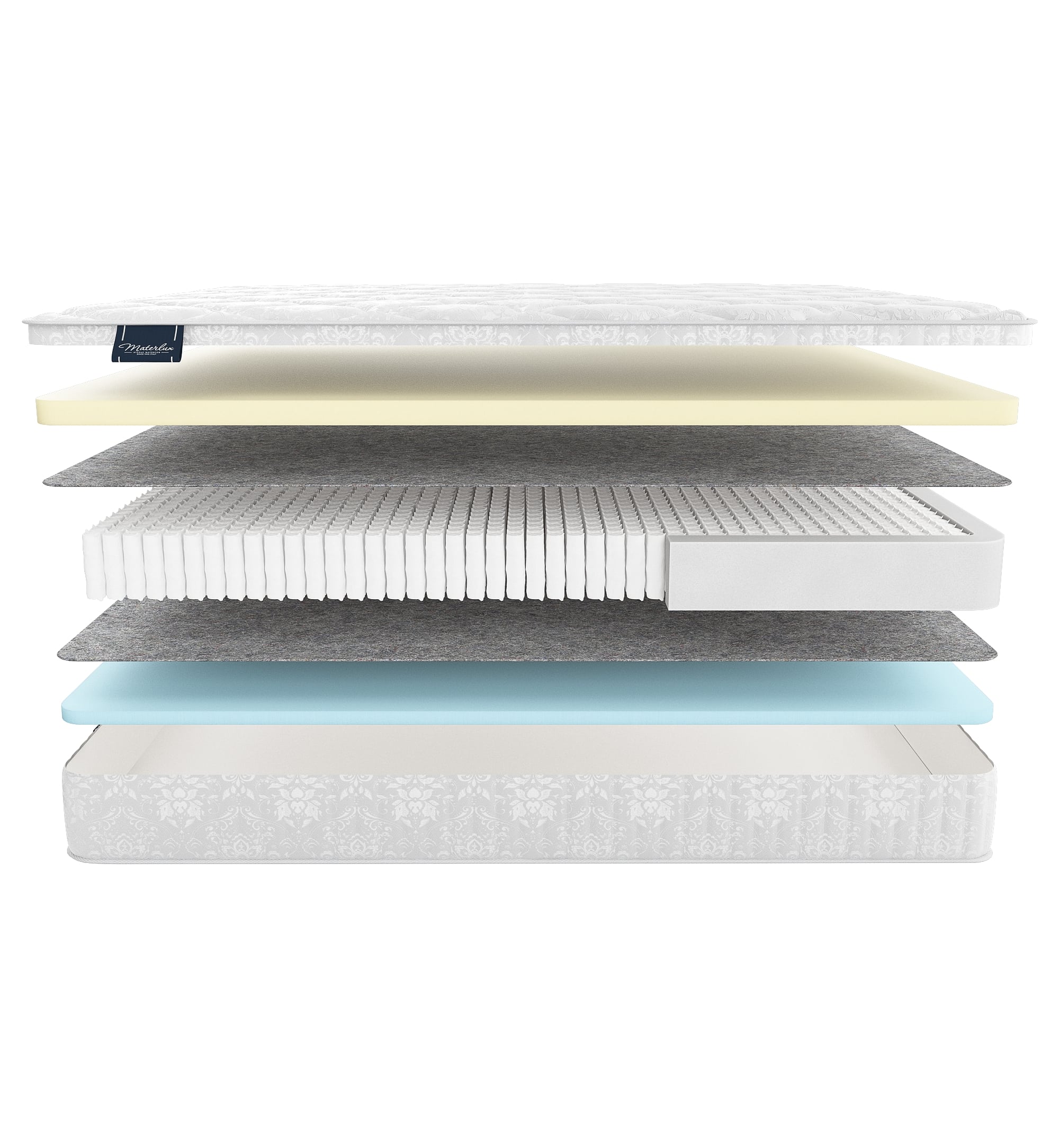 ● Feltro Termico — термофиксированный мягкий фетр из шерсти, пуха и хлопка. Мы прокладываем его между пружинной системой и наполнителями. Материал защищает слои от давления пружин, при этом не влияет на жесткость спальной поверхности. Матрас служит дольше, сохраняет упругость, комфорт и ортопедические свойства много лет.