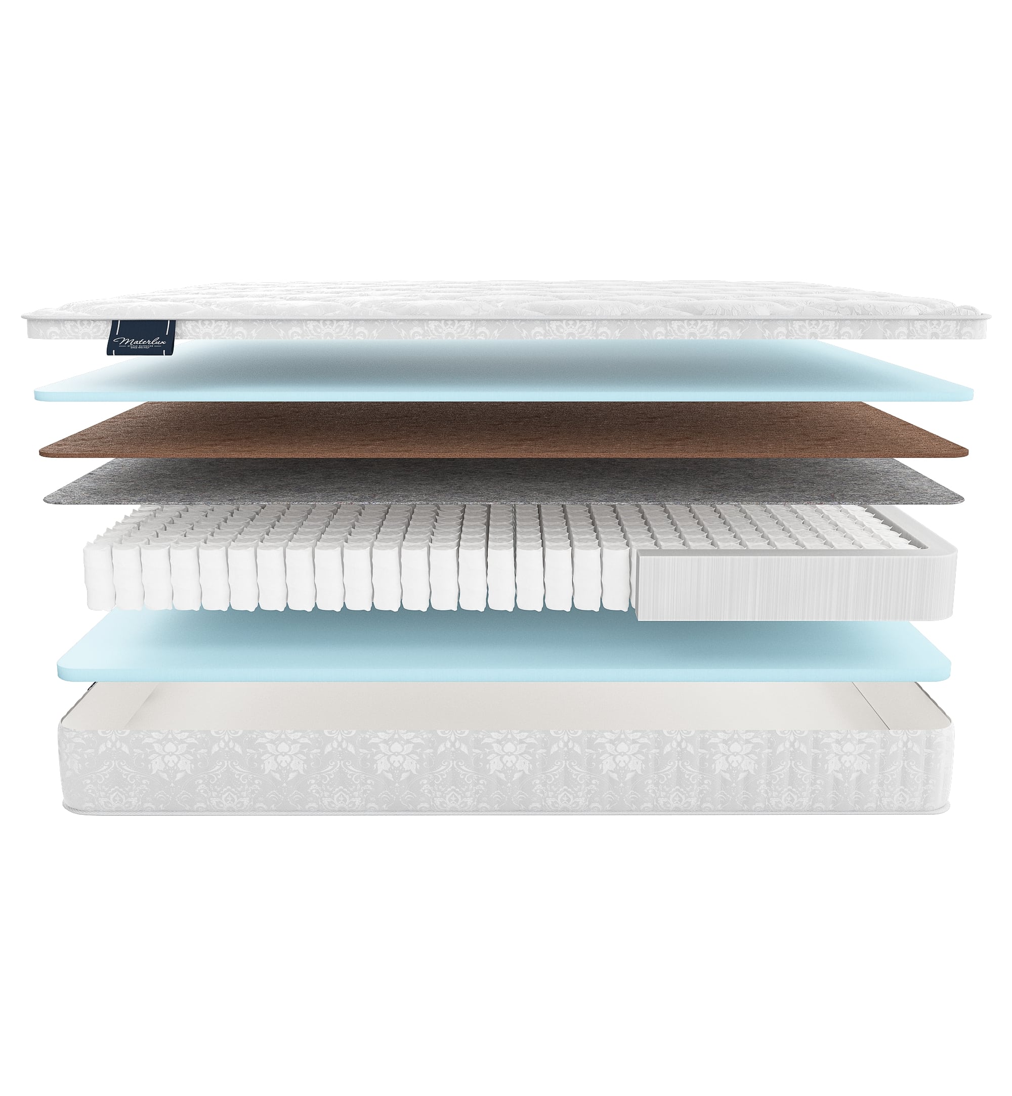 Матрас MaterLux Mintaro из коллекции Light — пружинная модель с разными по наполнению сторонами. Она сочетает в себе ортопедическую поддержку пружинной системы и кокосовой койры с анатомическим эффектом уютной пены.