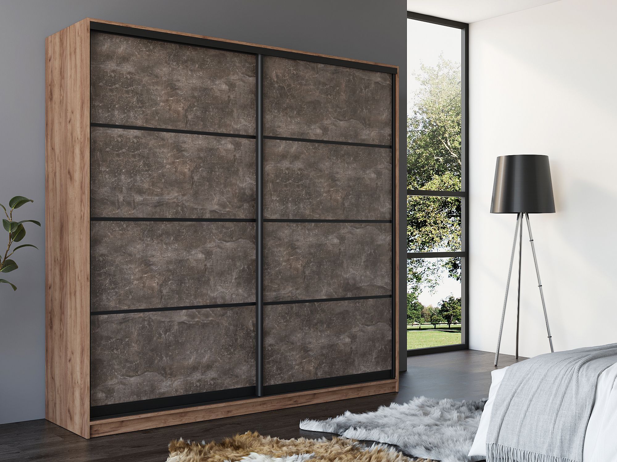 Шкаф купе 2-х дверный Амстердам 180 (Бетон темный)