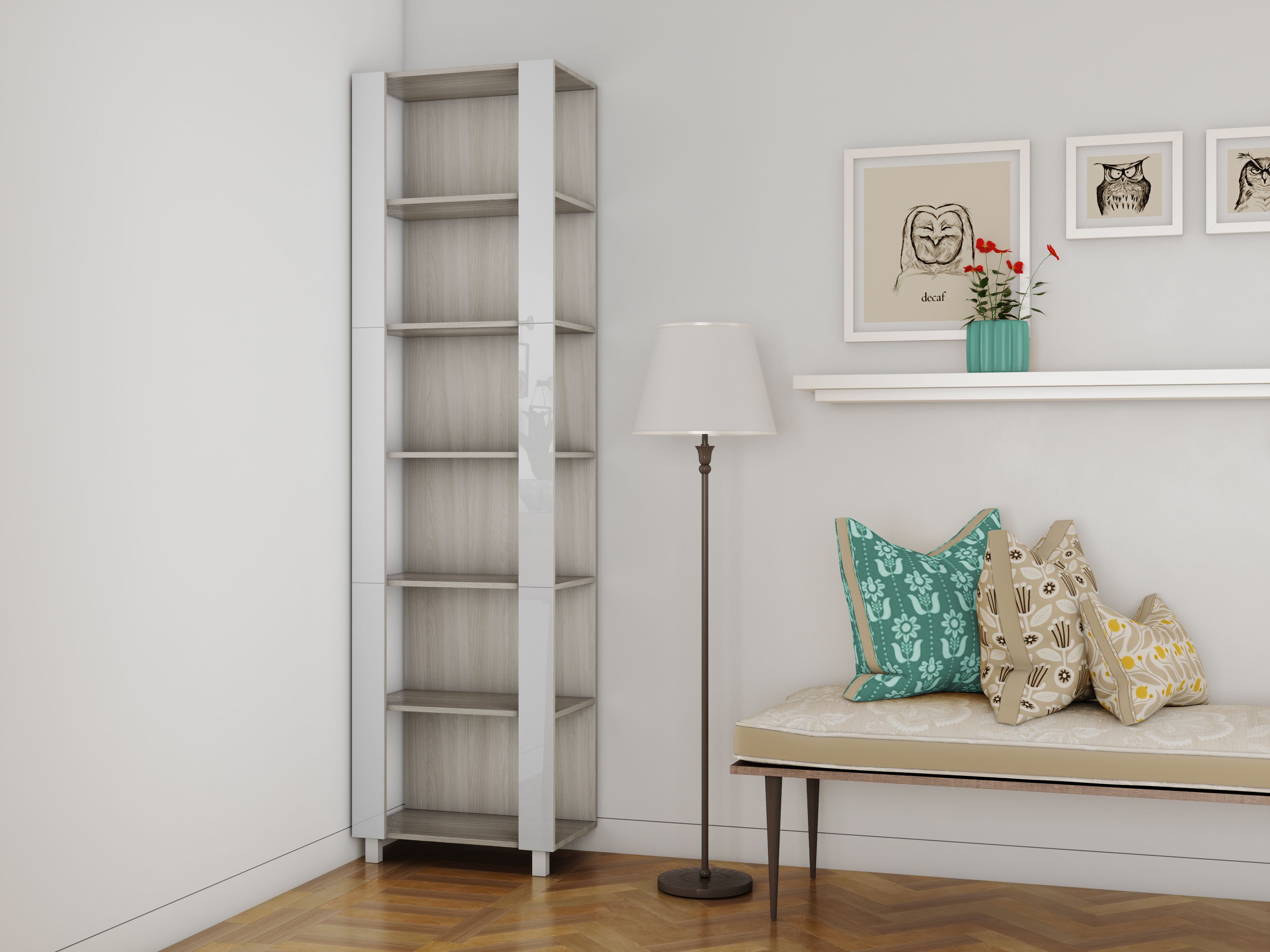 Отзывы о Столплит Стеллаж модульный Универсальный 35х44х240 Белое стекло Ясень шимо светлый