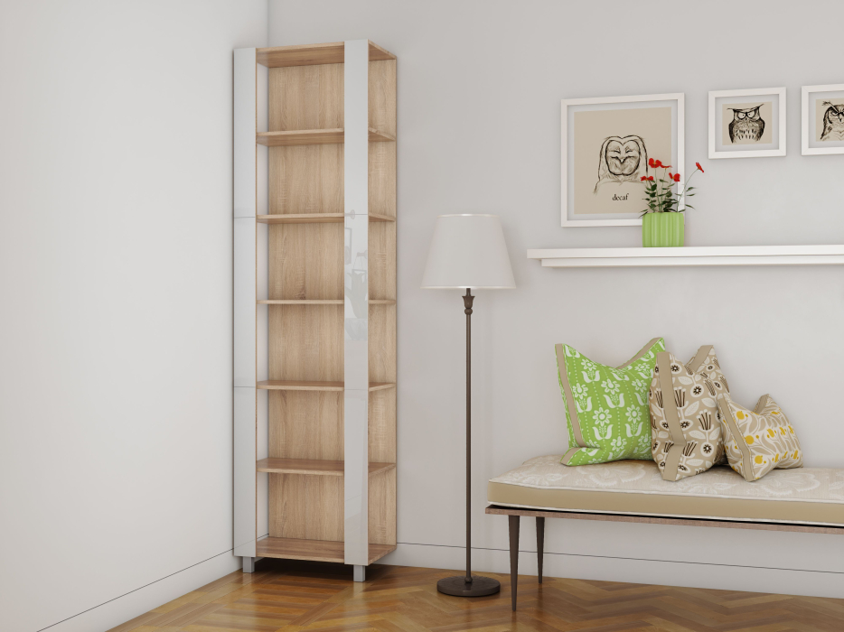 Отзывы о Столплит Стеллаж модульный Универсальный 35х60х220 Белое стекло Дуб сонома