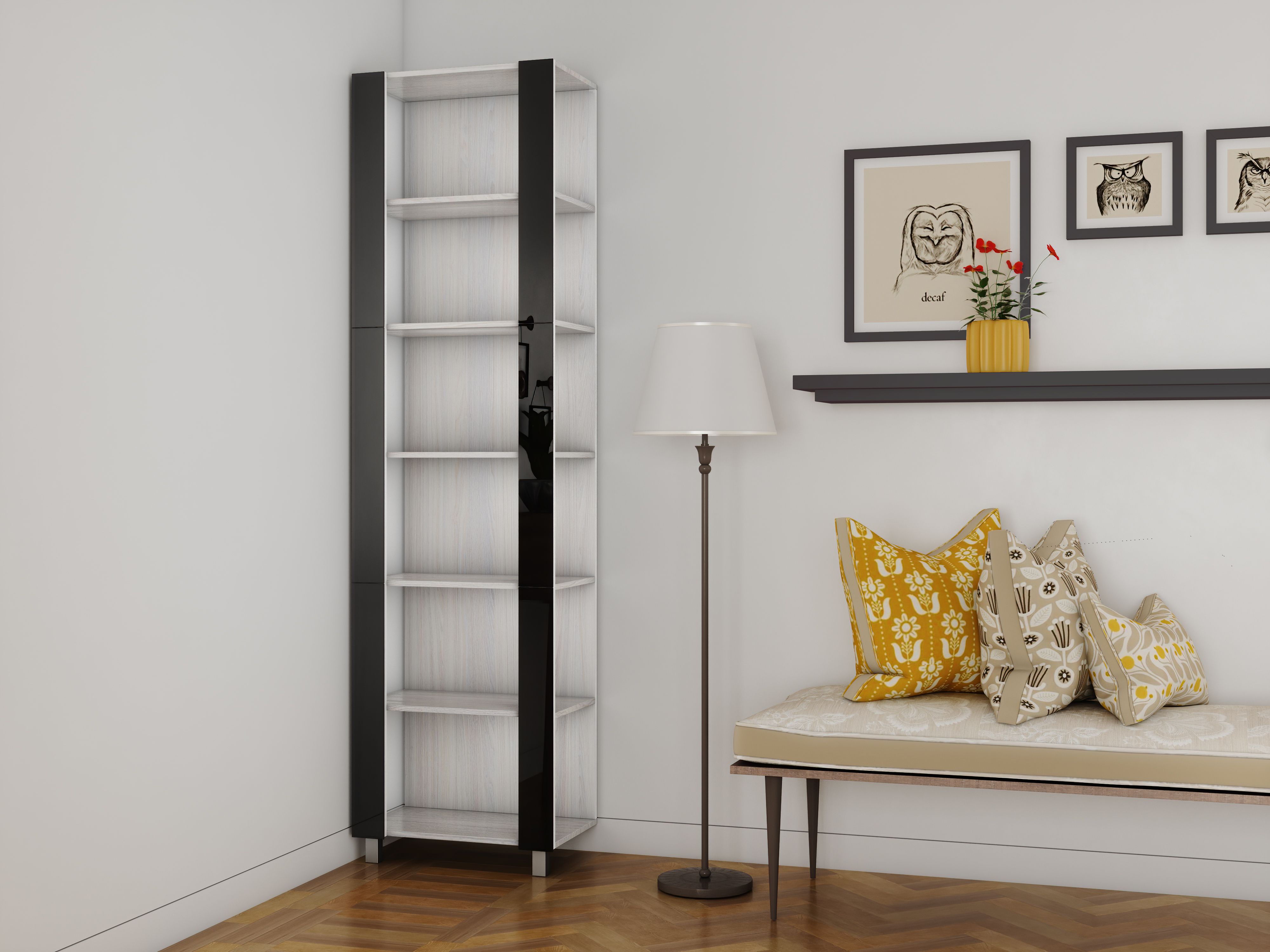 Отзывы о Столплит Стеллаж модульный Универсальный 35х44х240 Черное стекло Ясень Анкор светлый