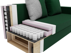 Наполнитель - пенополиуретан, который обеспечивает мягкость и комфорт при сидении. Каркас выполнен из ДВП, ЛДСП и массива дерева, что гарантирует прочность и долговечность изделия.